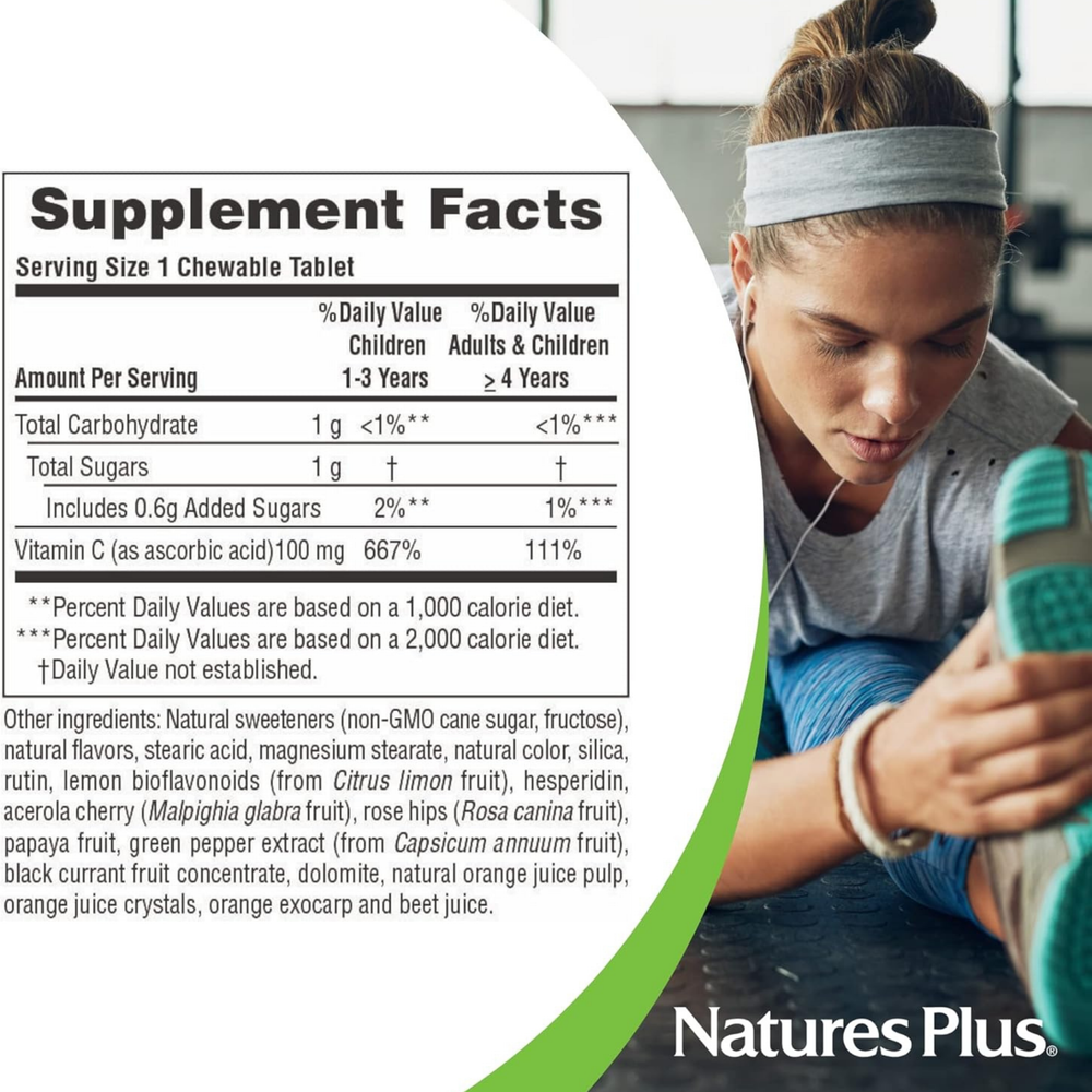 NaturesPlus, Orange Juice Jr Chewable Vitamin C, Natural Orange, 100 Mg, 180 Tablets