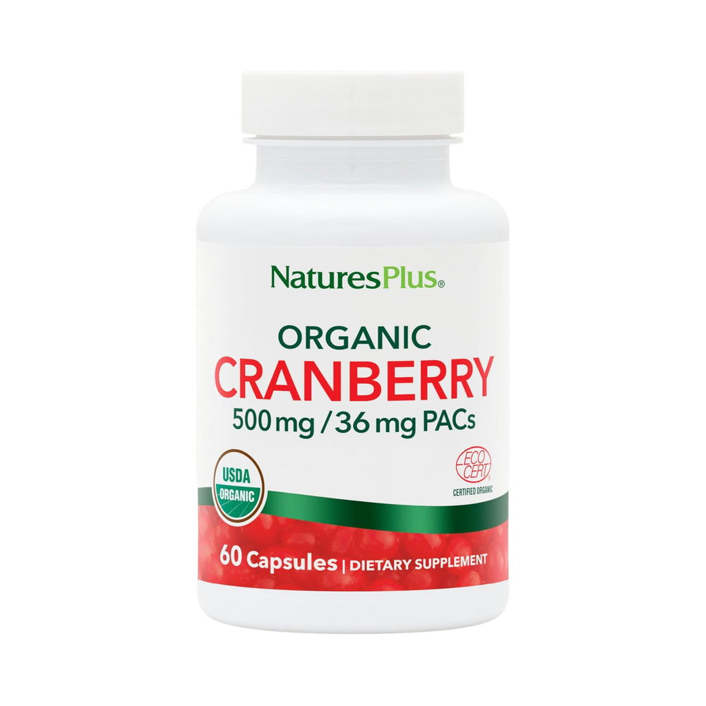 NaturesPlus® Organic Cranberry capsules provide 500 mg of whole fruit cranberry and 36 mg of Proanthocyanidins (PACs) to help promote a healthy urinary tract. More convenient to take than common cranberry juices, these capsules provide outstanding urinary tract benefits without the added sugar.
