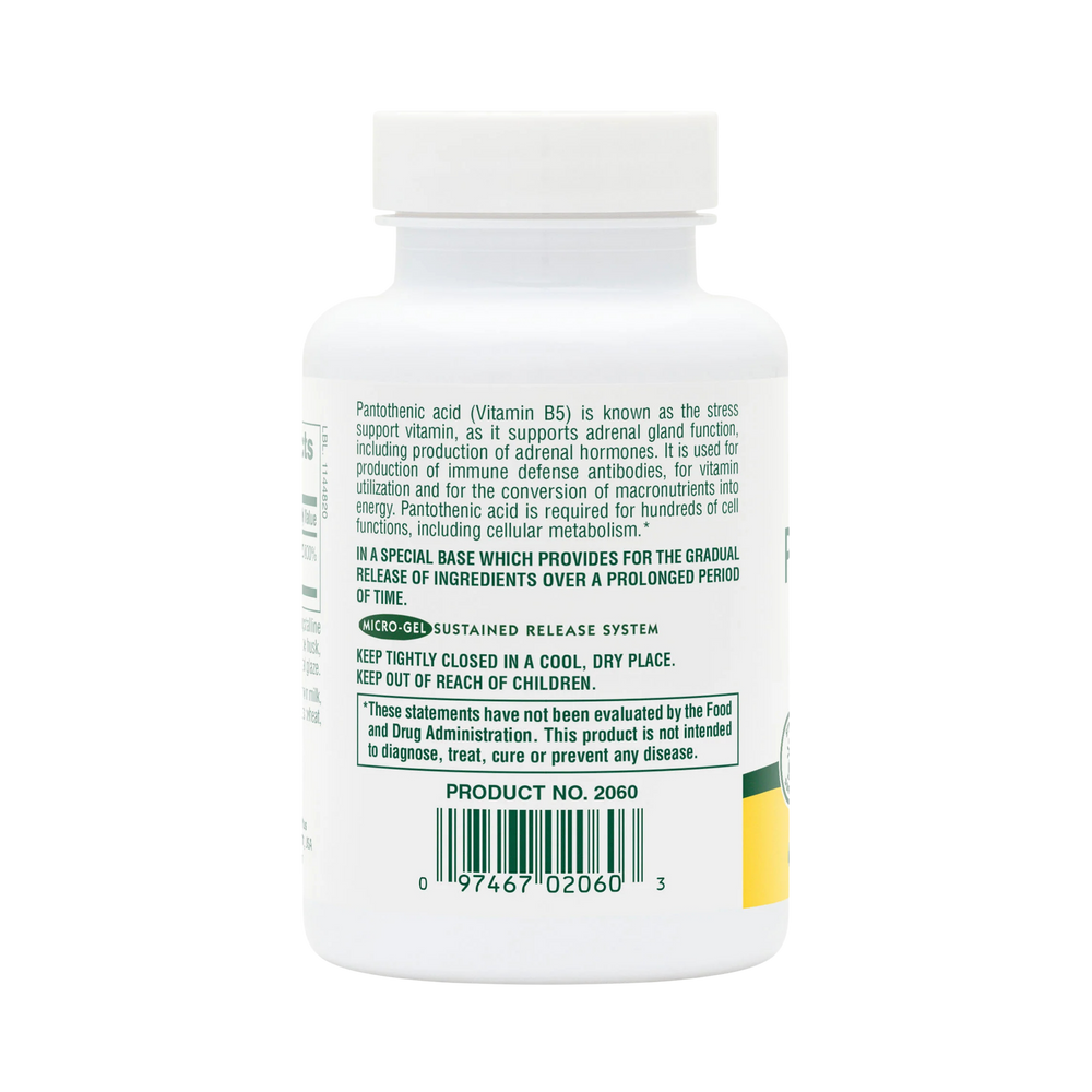 Pantothenic acid (Vitamin B5) is known as the stress support vitamin, as it supports adrenal gland function, including production of adrenal hormones. It is used for production of immune defense antibodies, for vitamin utilization and for the conversion of macronutrients into energy. Pantothenic acid is required for hundreds of cell functions, including cellular metabolism.