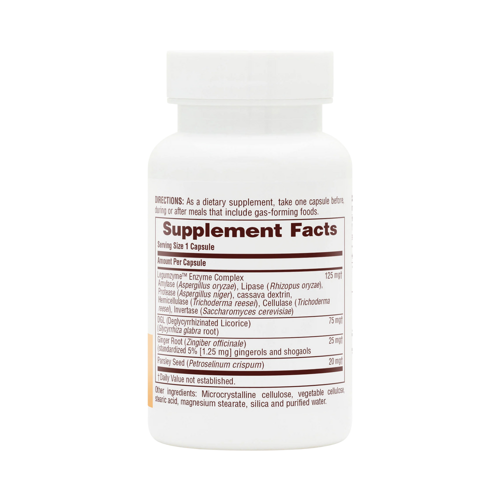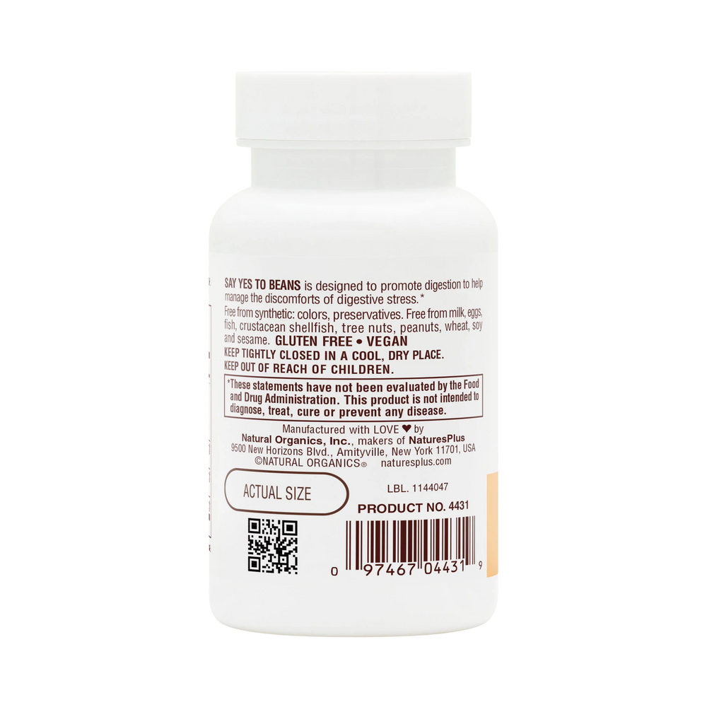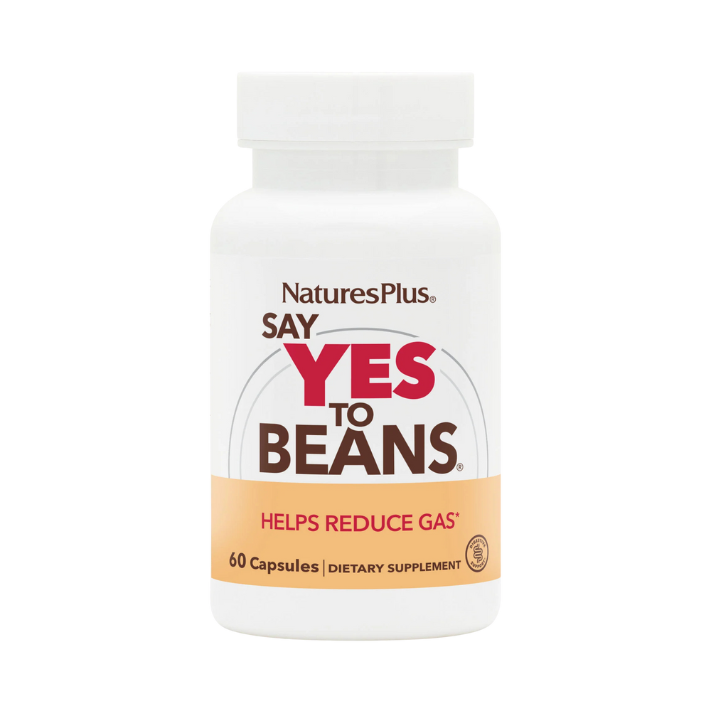NaturesPlus® Say Yes To Beans is a maximum-strength dietary supplement designed to manage the discomfort and digestive stress which occur soon after consuming beans, legumes, vegetables, whole grains, soy products and many other healthful foods. Each fast-acting capsule supplies a highly active food enzyme complex that assists in the breakdown of oligosaccharides (gas-forming complex sugars of vegetable origin), called Legumzyme, as well as standardized licorice root, standardized ginger root and parsley seed.