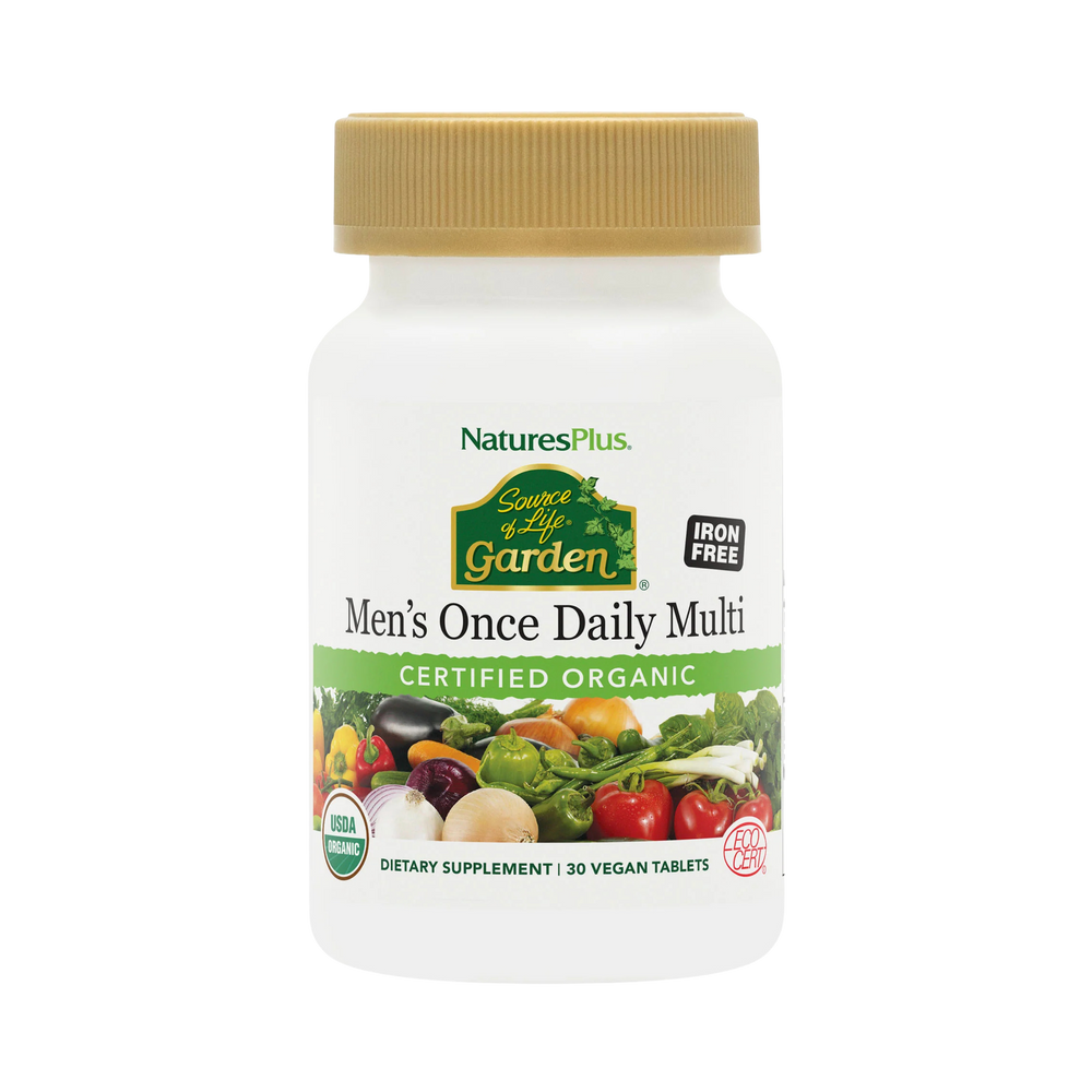 NaturesPlus, Source of Life Garden, Organic Men's Once Daily Multi, Iron Free, 30 Vegan Tablets