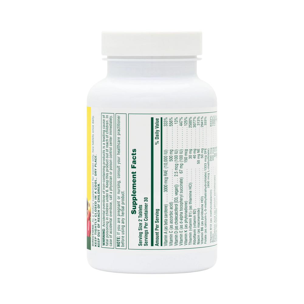 Vitamin A (as beta carotene), Vitamin C (as ascorbic acid), Vitamin D (as cholecalciferol [D3, vegan]), Vitamin E (as d-alpha tocopheryl succinate), Vitamin K (as phytonadione), Thiamin (vitamin B1) (as thiamine HCI), Riboflavin (vitamin B2), Niacin (as niacinamide), Vitamin B6 (as pyridoxine HCI), Folate (as calcium-L-5-methyltetrahydrofolate) (L-methylfolate), Vitamin B12 (as methylcobalamin), Biotin, Pantothenic Acid (as calcium pantothenate), Choline (as bitartrate), Calcium (as aminoate complex), lron (as aminoate complex), lodine (as potassium iodide), Magnesium (as aminoate complex), Zinc (as monomethionine), Selenium (as aminoate complex), Copper (as aminoate complex), Manganese (as aminoate complex), Chromium (as polynicotinate), Molybdenum (as aminoate complex), Spirulina, Ostivone® (ipriflavone), Bromelain (from pineapple fruit), Novasoy® (soy extract), Fem-Effect Complex (Proprietary blend of Chasteberry [Vitex agnus-castus fruit], Damiana [leaves], Dong Quai [Angelica sinensis root], Black Cohosh [Cimicifuga racemosa root]), Inositol, Bioflavonoid Complex (from Citrus limon/sinensis whole fruit), Herbal Antioxidant Complex (Proprietary blend of Turmeric [Curcuma longa rhizome], Bilberry [Vaccinium myrtillus extract], Green Tea [Camellia sinesis leaf] [decaffeinated]), Lipase (from Aspergillus niger fermentation), Amylase (from Aspergillus oryzae fermentation), Lactase (DairyMate®), Protease (from Aspergillus niger fermentation), Lutein (active carotenoid from marigold flower extract), Boron (as citrate). Other ingredients: Calcium carbonate, magnesium oxide, vegetable cellulose, magnesium stearate, stearic acid, microcrystalline cellulose, astragalus root, thyme leaf, ligustrum berry, schisandra fruit, rice protein and pharmaceutical glaze. Mineral aminoates are whole brown rice chelates.