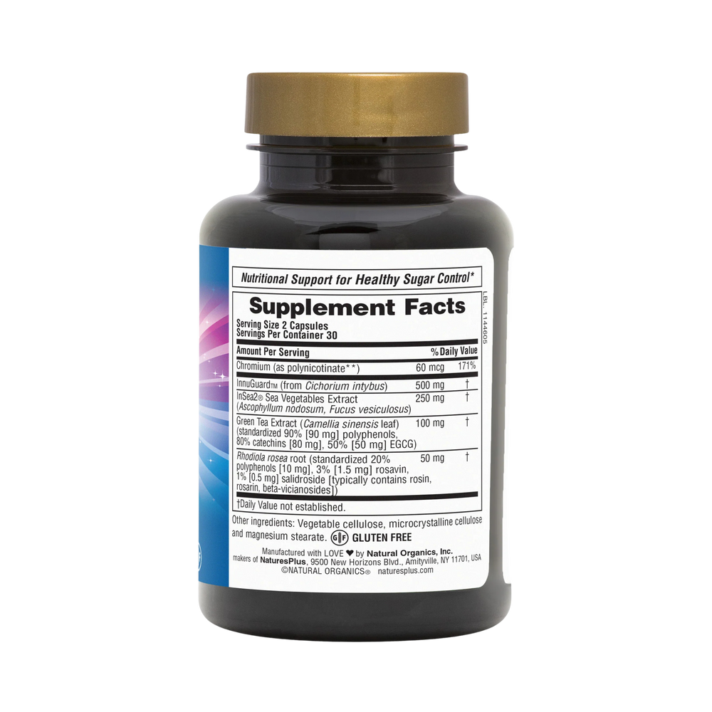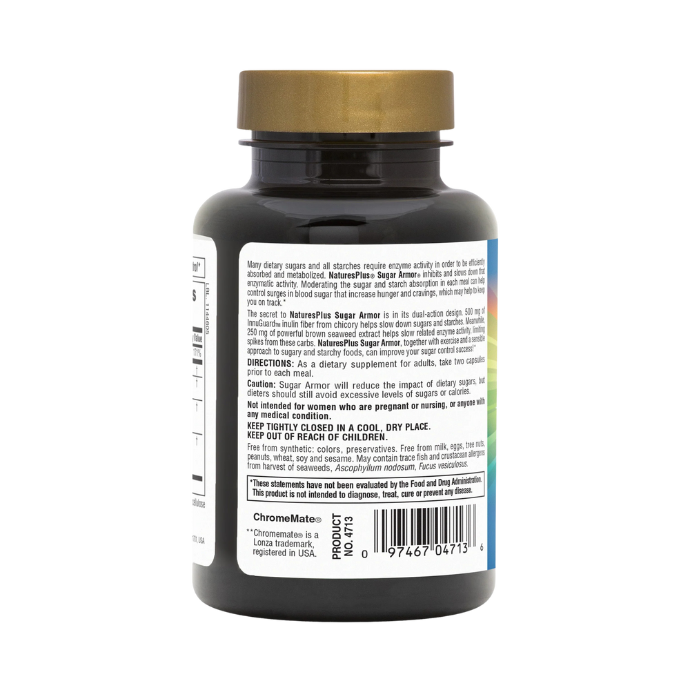 The secret to NaturesPlus Sugar Armor is in its dual-action shielding system. 500 mg of InnuGuard™ inulin fiber from chicory surrounds the sugars and starches you eat, slowing down digestion and absorption. Meanwhile, 250 mg of powerful brown seaweed extract further inhibits sugar and starch digestion, limiting the impact of these carbs. NaturesPlus Sugar Armor, together with exercise and a sensible approach to sugary and starchy foods, can improve your weight management success!