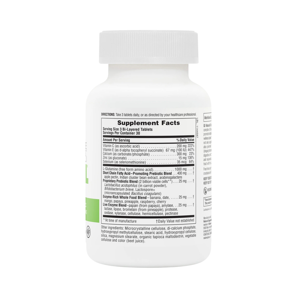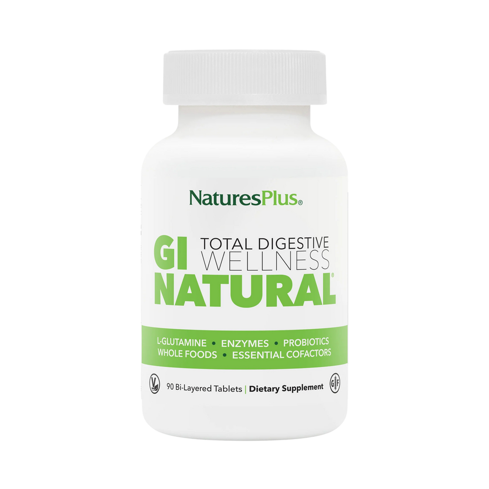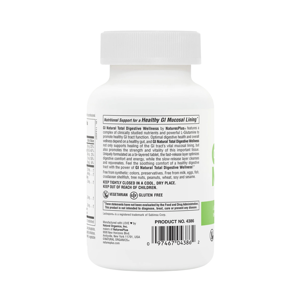 GI Natural Total Digestive Wellness by NaturesPlus® features a complex of clinically studied nutrients and powerful L-Glutamine to promote healthy GI tract function. Optimal digestive health and overall wellness depend on a healthy gut, and GI Natural Total Digestive Wellness not only supports healing of the GI tract's vital mucosal lining, but also promotes the strength and vitality of this important tissue. Uniquely formulated as a bi-layered tablet, the fast-release layer optimizes digestive comfort and energy, while the slow-release layer cleanses and rejuvenates. Feel the soothing comfort of a healthy digestive tract with the power of GI Natural Total Digestive Wellness!