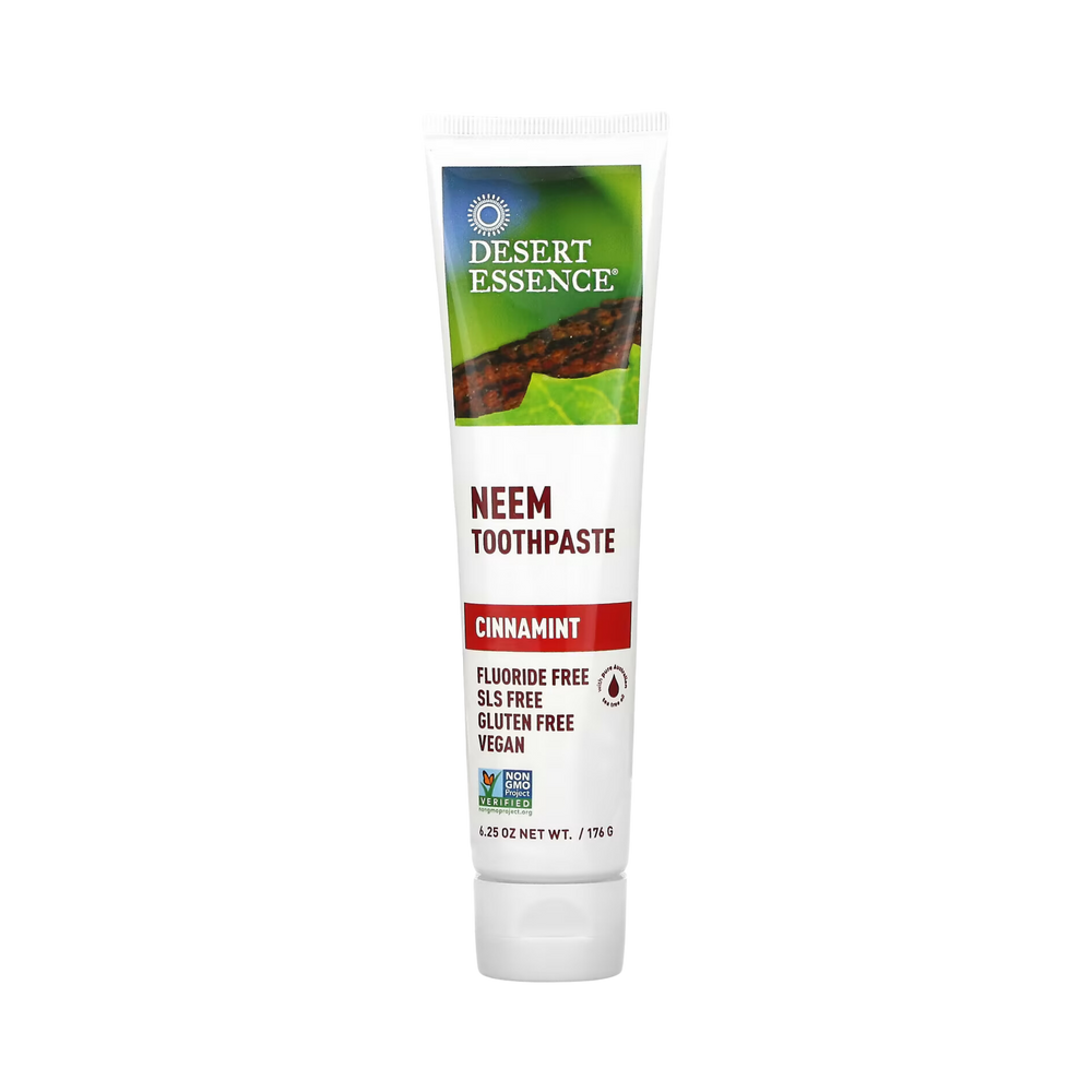 The bold flavor of Cinnamint paired with Ayurvedic Neem and Australian Tea Tree Oil helps this fluoride-free toothpaste keep your mouth healthy and your smile bright.