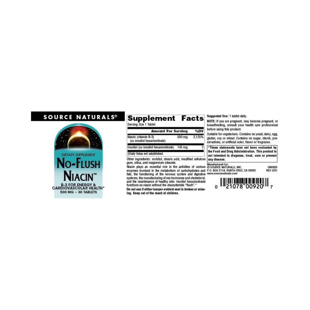 Source Naturals, No-Flush Niacin, 500 Mg, 30 Tablets