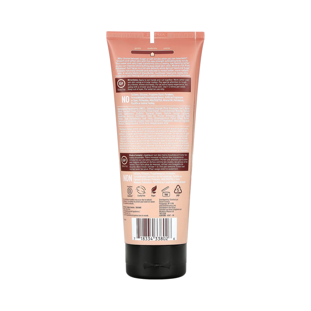 Brimming with botanical minerals and vitamins, this spa-strength Himalayan salt sugar body scrub transforms into a creamy, low-foaming lather, cleansing your body while sending dead skin cells on their way. Mineral-rich Pink Himalayan Salt helps nourish and detoxify, while Apricot Seed Powder and Sugar Crystals smooth and renew. A velvety blend of Shea Butter, Sunflower Seed Oil and Jojoba Oil—combined with soothing Aloe Leaf Juice—reveals soft, smooth skin with a spa-like glow.