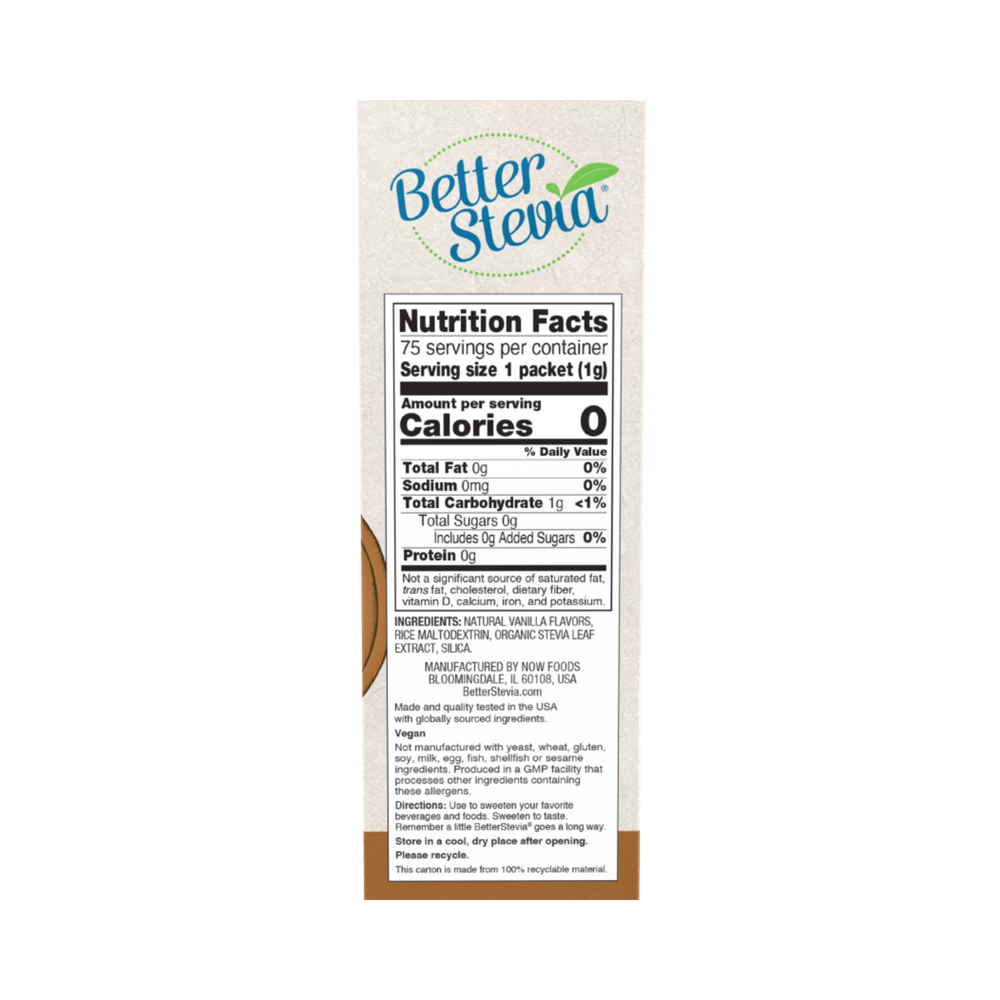 NOW Foods, BetterStevia, Zero Calorie Sweetener, French Vanilla, 75 Packets