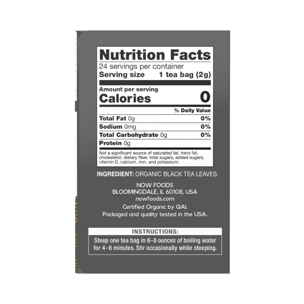 NOW Foods, Organic Black Tea, 24 Tea Bags, 1.7 Oz