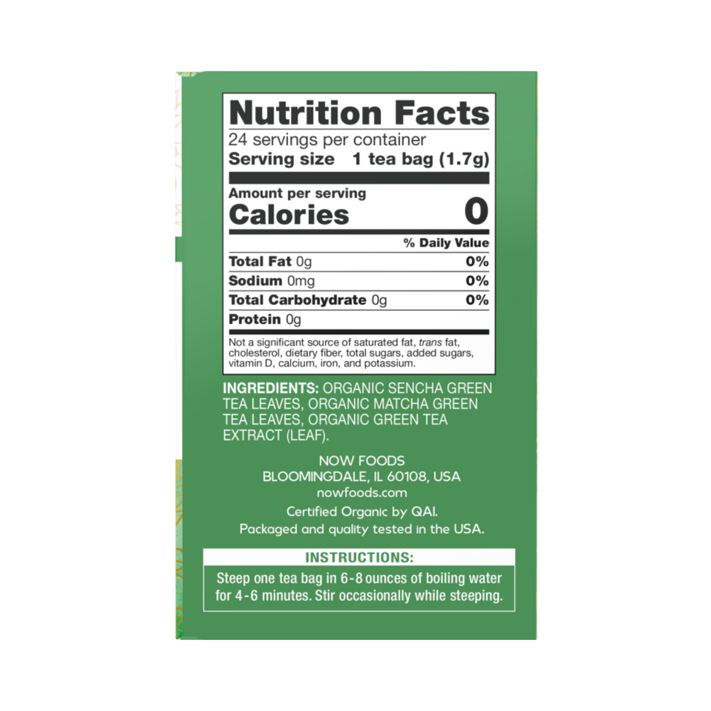 NOW Foods, Organic Green Kick, 24 Tea Bags, 1.7 Oz