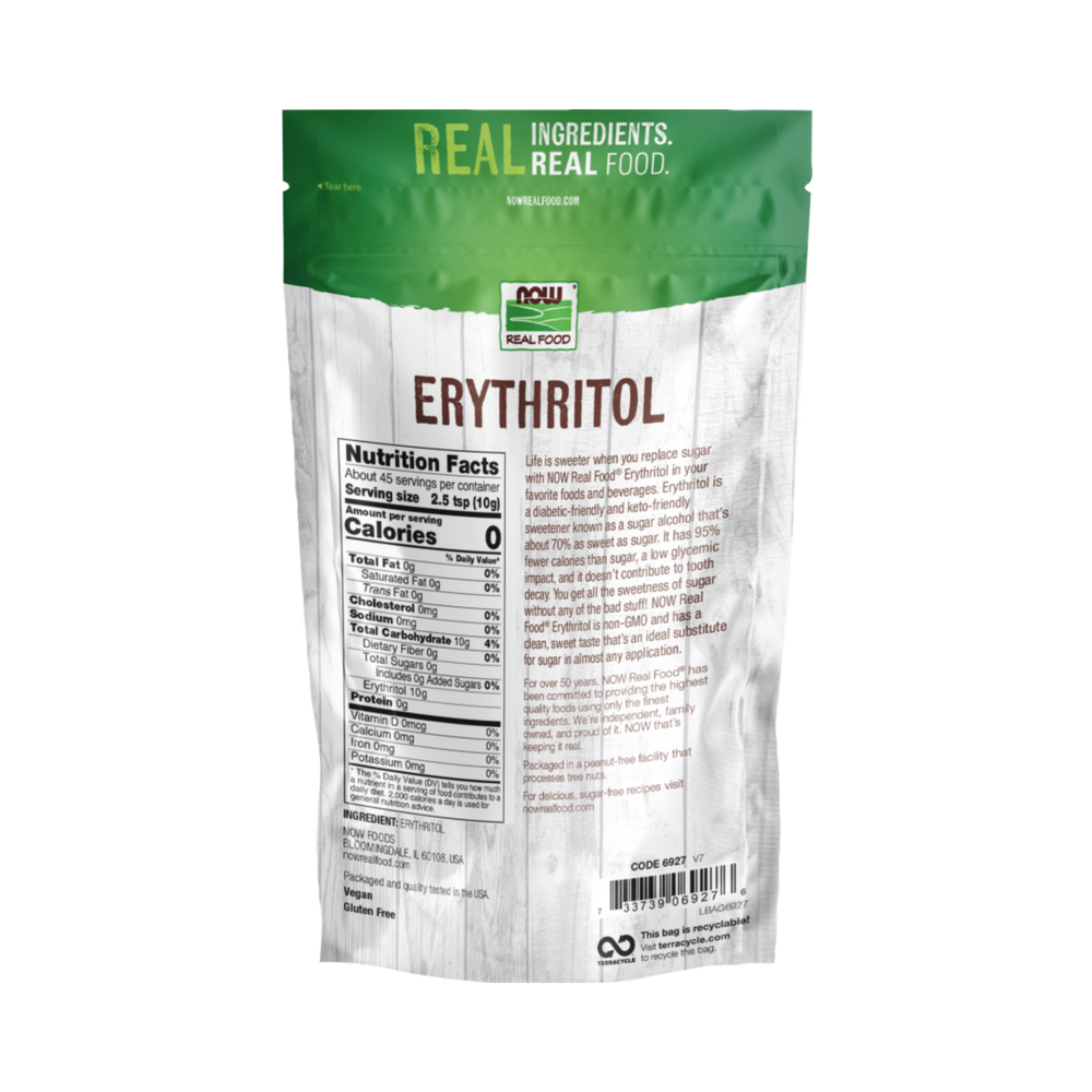 Life is sweeter when you replace sugar with NOW Real Food® Erythritol in your favorite foods and beverages. Erythritol is a diabetic-friendly and keto-friendly sweetener known as a sugar alcohol that's about 70% as sweet as refined sugar. It has 95% fewer calories than sugar, a low glycemic impact, and it doesn't contribute to tooth decay. You get all the sweetness of sugar without any of the bad stuff! NOW Real Food® Erythritol is non-GMO and has a clean, sweet taste that's an ideal substitute for sugar in almost any application.