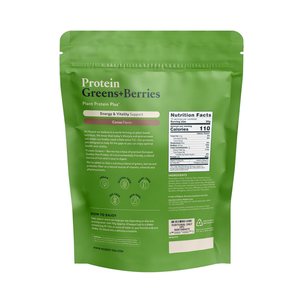 A plant protein drink mix to help simplify your daily nutrition. With 20g of golden pea protein per serving, 8 greens and herbs, and 11 fruits and berries, Protein Greens + Berries is an easy way to support everyday wellness through real-food ingredients, in one simple blend. Shake it, blend it, or bake with it.