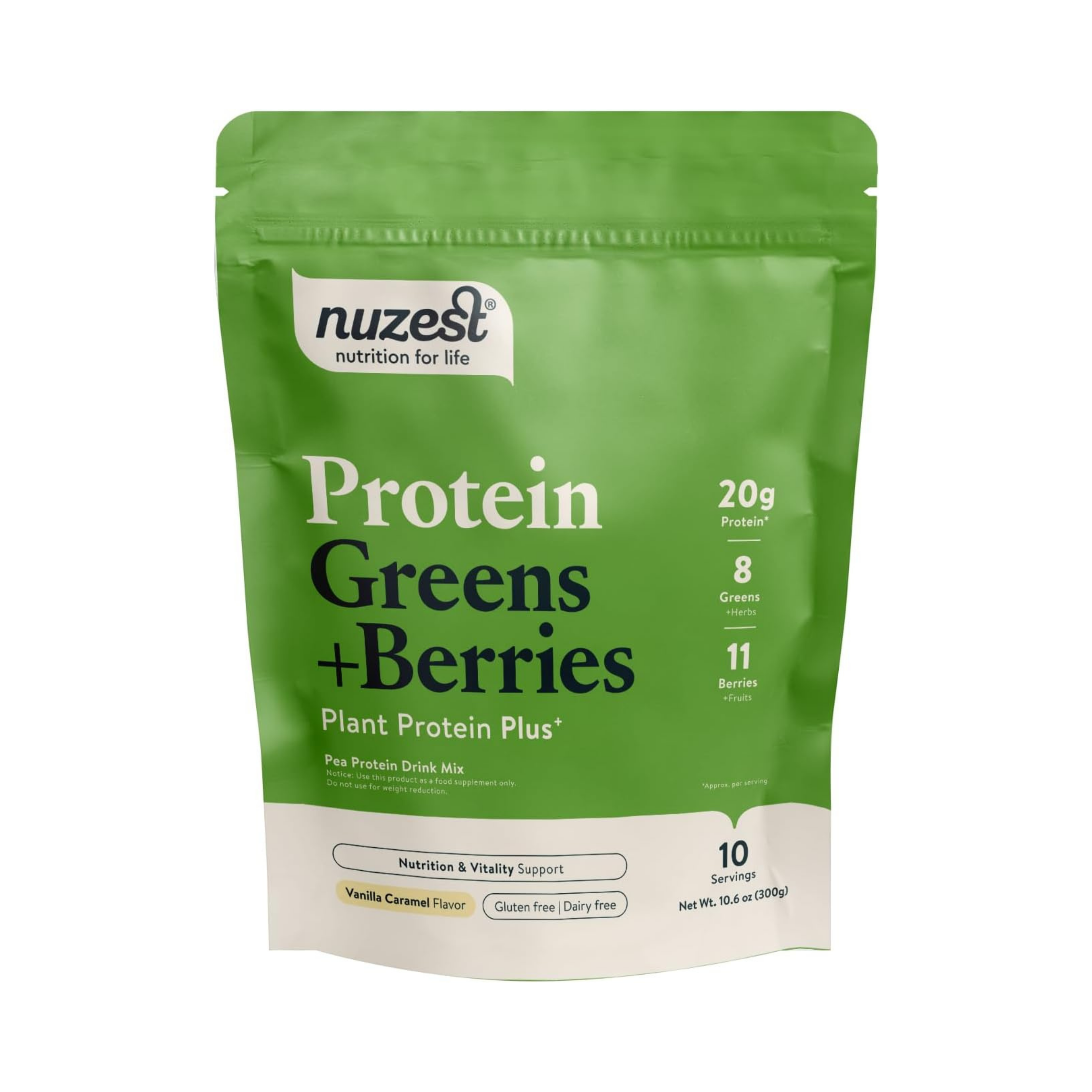 Pea protein isolate, Prebiotic fiber, Berries Blend (Acai, Acerola, Amla, Cranberry, Goji, Jabuticaba, Mangosteen, Maqui, Pomegranate, Strawberry), Natural vanilla flavor, Greens Blend (Alfalfa grass, Barley grass, Oat grass, Wheatgrass, Kale, Chlorella, Spirulina, Astragalus, Lemon), Natural caramel flavor, Sea salt, Thaumatin. |