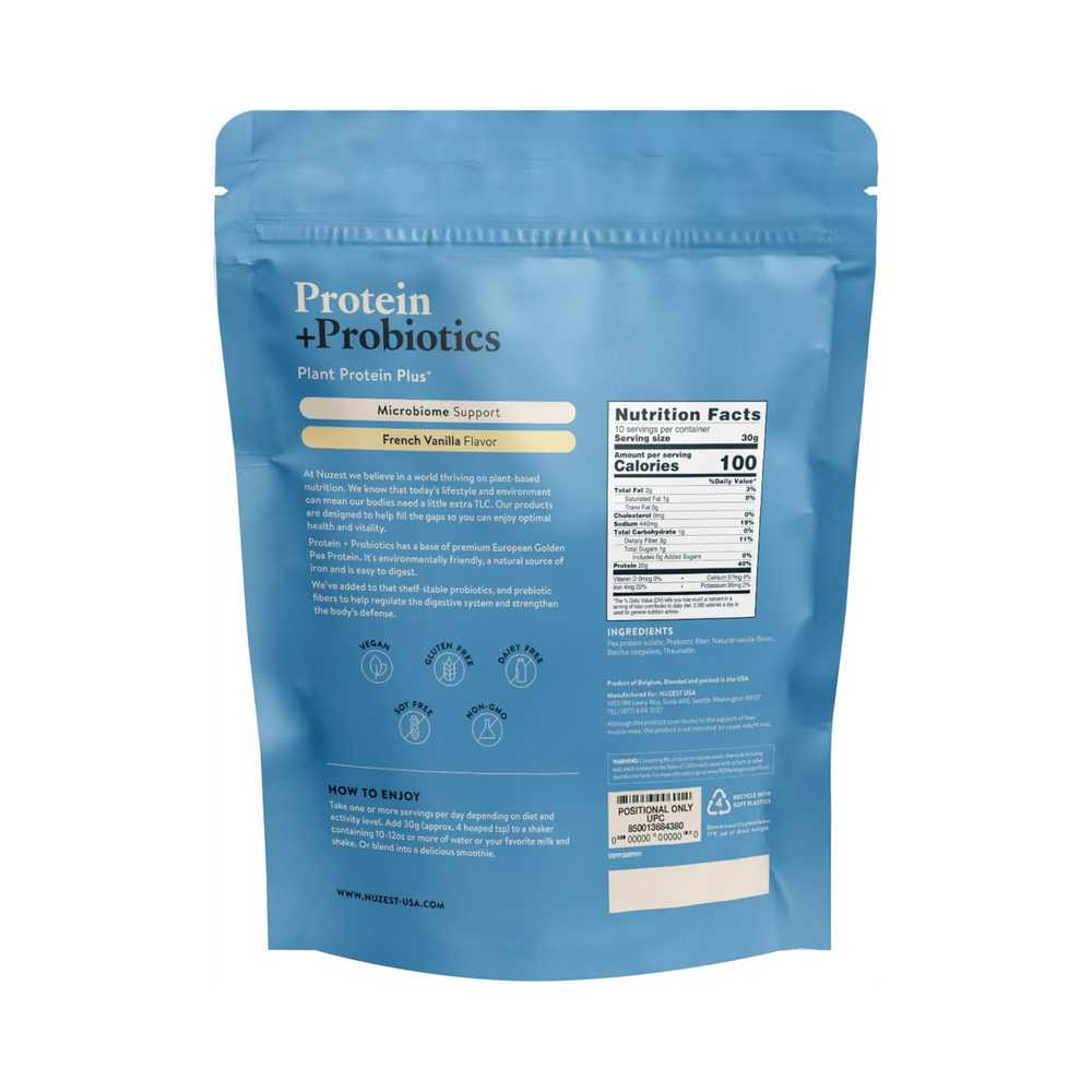 A plant protein drink mix made to help support your gut. With 20g golden pea protein per serving, shelf-stable probiotics, and prebiotic fiber, Protein + Probiotics helps nourish the microbiome, while supporting the function and integrity of the digestive system. It’s vegan, hypoallergenic, and easy to mix into shakes, smoothies or baking.
