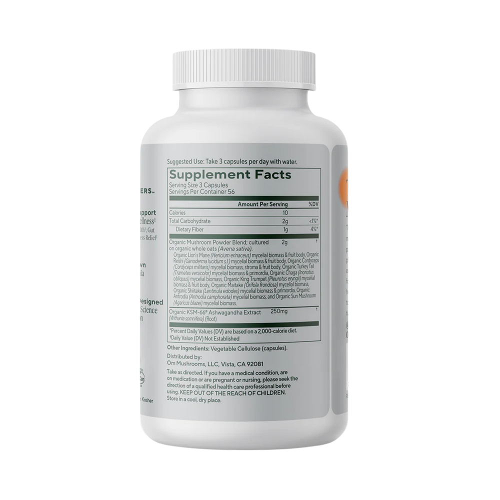 Think of it as your daily multi, but make it mushrooms: Master Blend packs 10 powerful mushrooms plus KSM-66® Ashwagandha root extract into one comprehensive formula to help support immune health, gut health, and stress relief to aid through life's twists and turns. Hello, thriving.