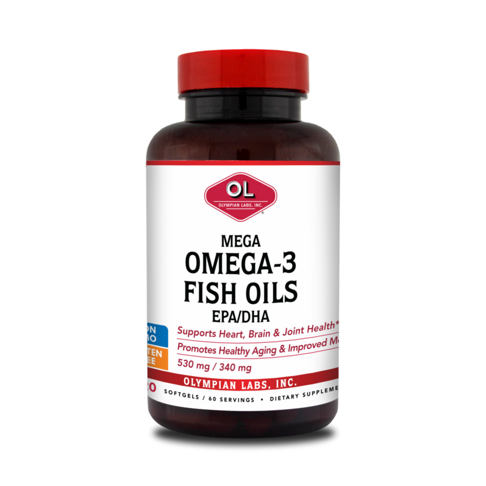 Olympian Labs OMEGA 3 FISH OILS is considered to be the unique fish oil as it plays a crucial role in brain function, supports eye and bone health, as well as normal growth and development. It is obtained from anchovies, mackerel and sardines found in cold, deep water. Olympian Labs Mega Omega-3 contains a high dose of 530 mg EPA and 340 mg DHA. EPA and DHA are key ingredients to help support heart health, mood, and cognitive ability.