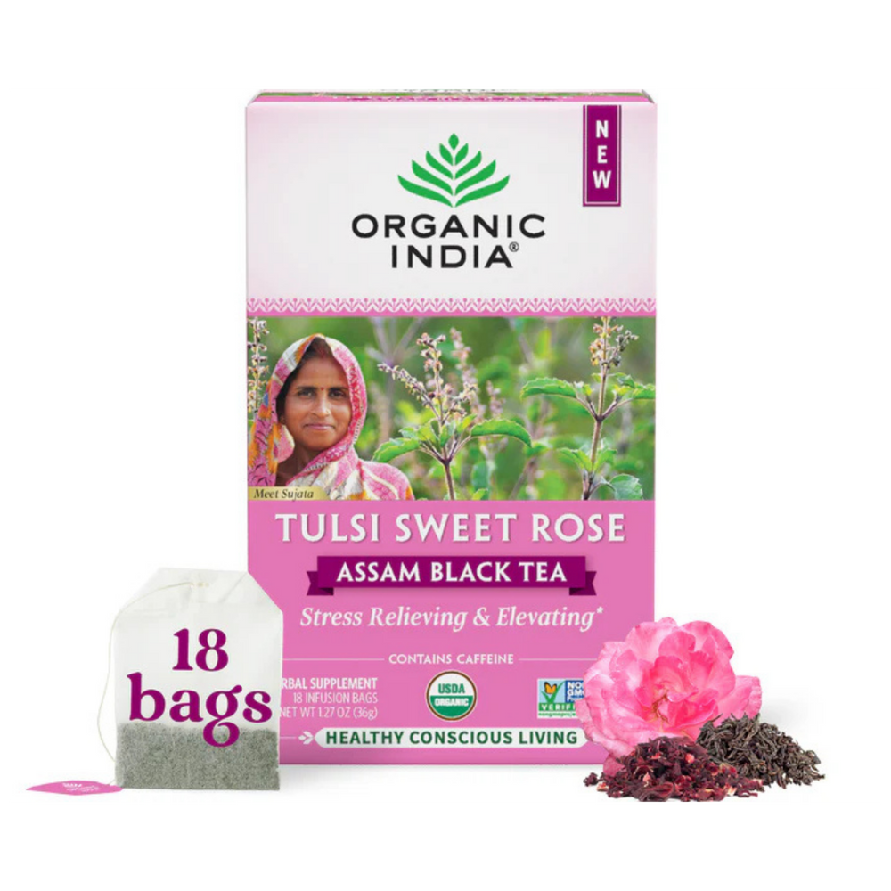 Organic India, Assam Black Tea, Tulsi Sweet Rose, 18 Infusion Bags, 1.27 Oz
