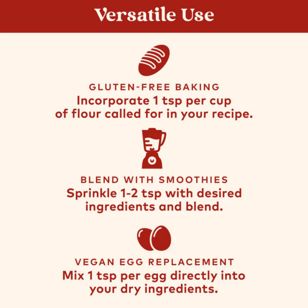 Vegan egg replacement: For baking, mix 1 tsp per egg in with dry ingredients and omit eggs.