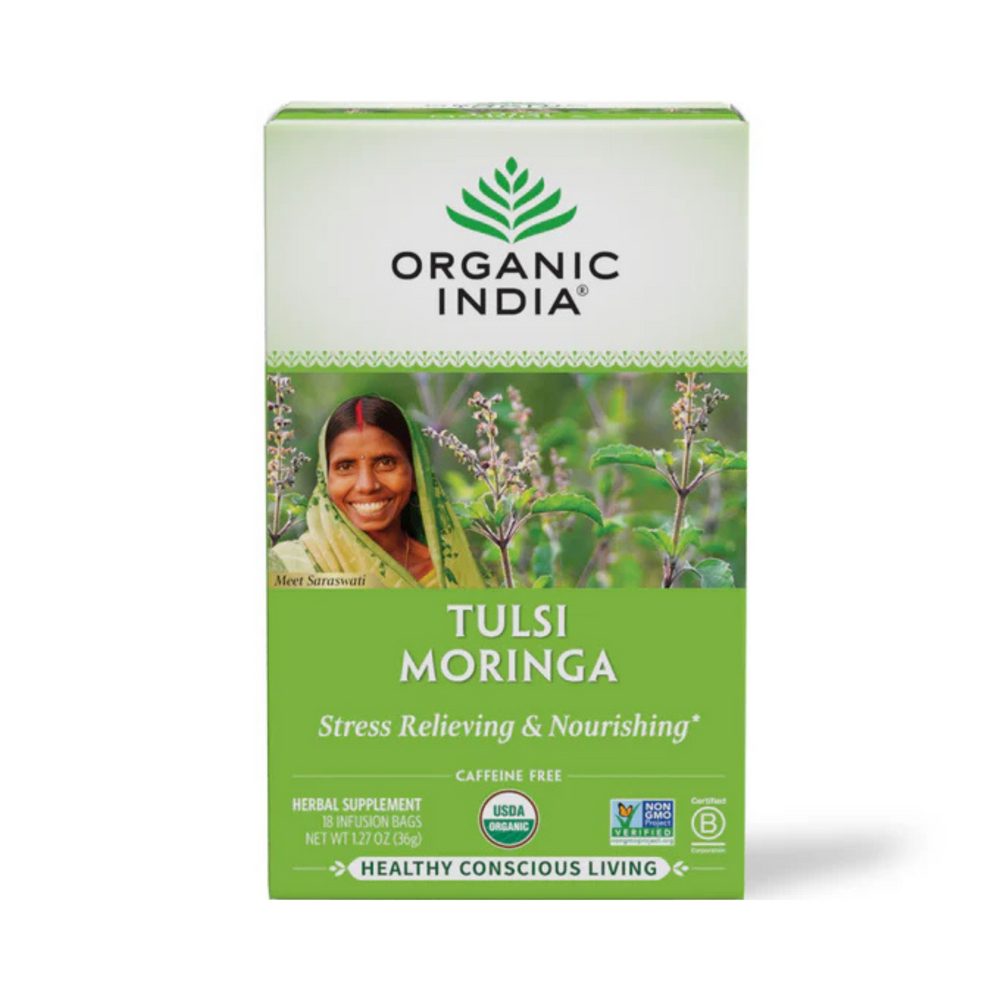 Moringa leaves come from a tree known as the "Miracle Tree." It's no wonder - this super herb floods the body with caffeine-free energy for a clean burst of mental and physical vitality whenever you need it. Paired with adaptogenic Tulsi, also known as Holy Basil, this invigorating infusion relieves stress, balances mood, and detoxifies the whole body.' Meet your perfect "power potion."
