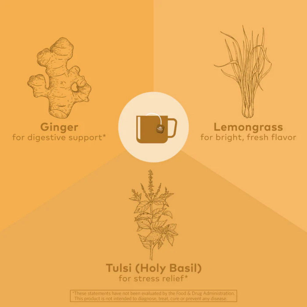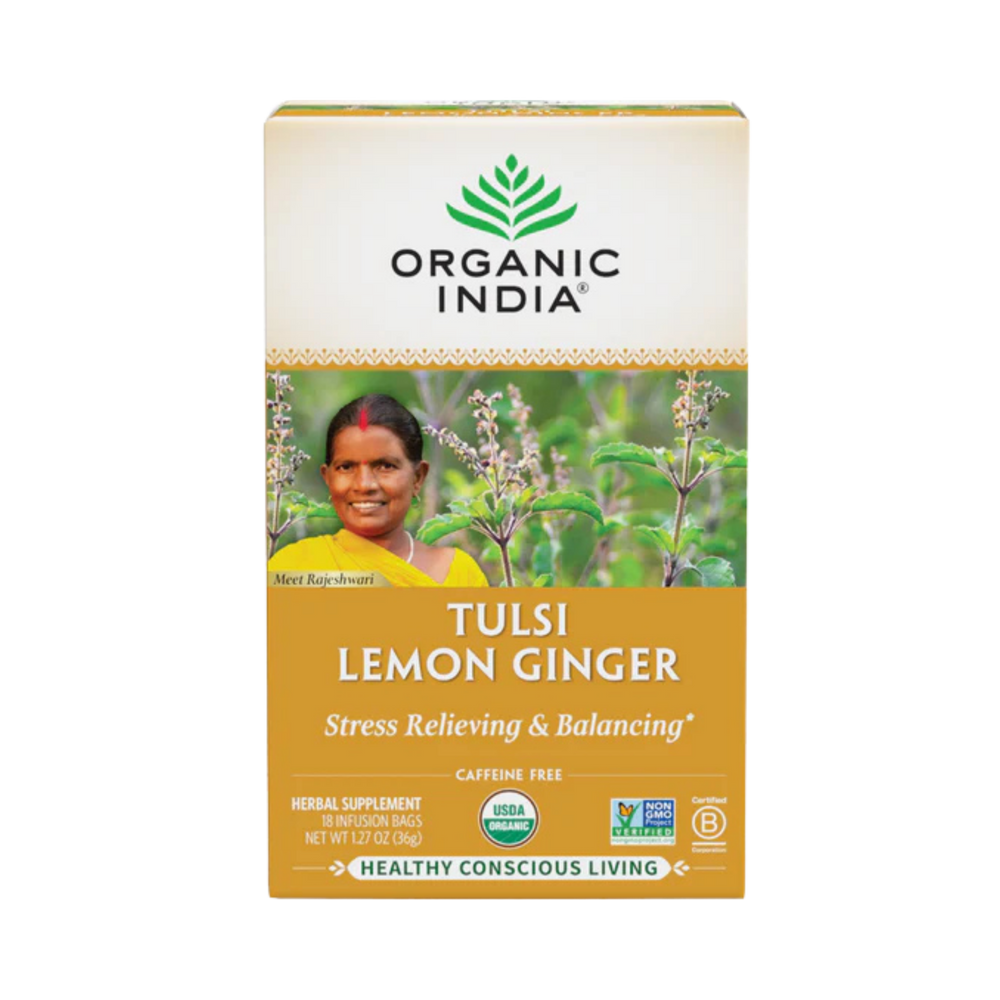Organic India, Tulsi Tea, Lemon Ginger, Caffeine-Free, 18 Infusion Bags, 1.27 Oz