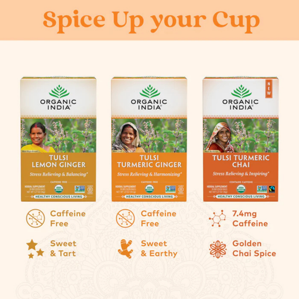 Tulsi, Turmeric, Ginger, and Cinnamon boost the body's inherent immune response while supporting natural detoxification.
