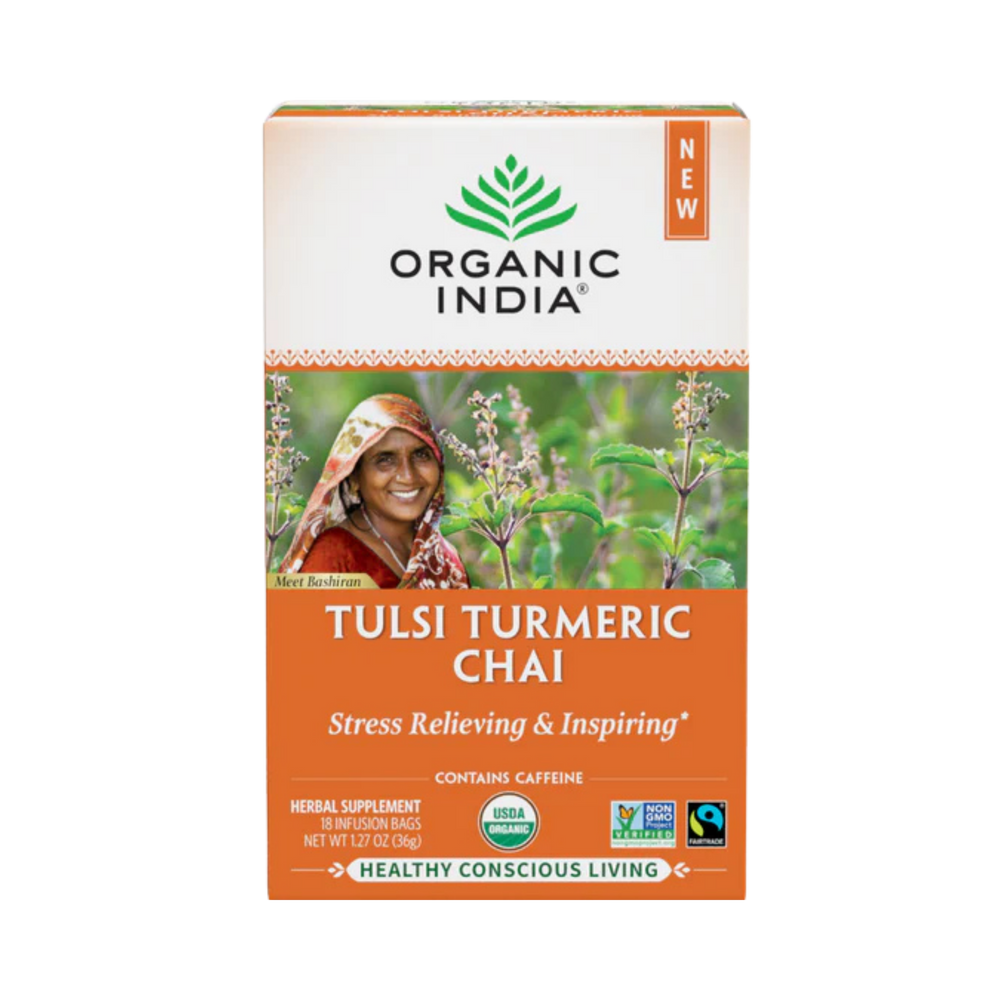 Take your Chai to the next level with a dose of peppery Turmeric and herbaceous Tulsi, the perfect union of sweet, earthy and spicy. Delicious on its own or with steamed milk to soothe the body and mind.