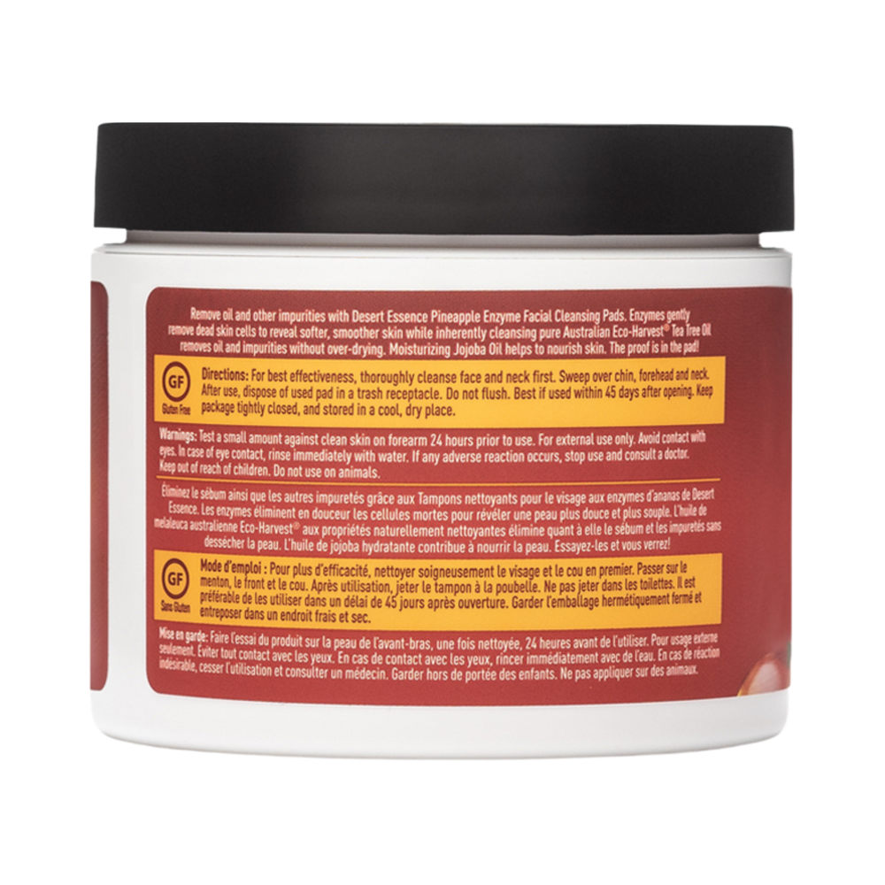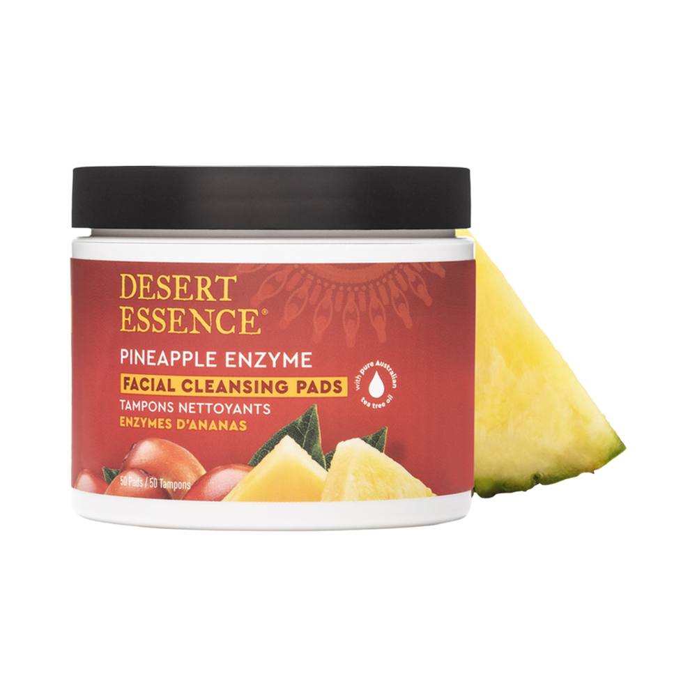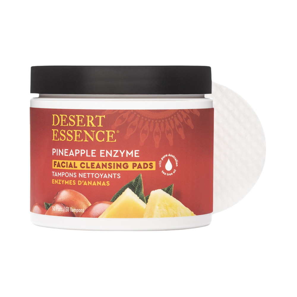 The perfect plant-powered solution for blemish-prone skin, our Pineapple Enzyme Facial Cleansing Pads purify and exfoliate to keep your complexion radiant and clear. Pineapple Enzymes gently remove dead surface cells for softer, smoother skin, while inherently cleansing Australian Eco-Harvest® Tea Tree Oil removes impurities and excess oil without a stripping effect. Sustainably sourced Jojoba Oil provides extra nourishment and luminosity. Apply after your first cleanse or on-the-go for clearer, smoother, more radiant skin.