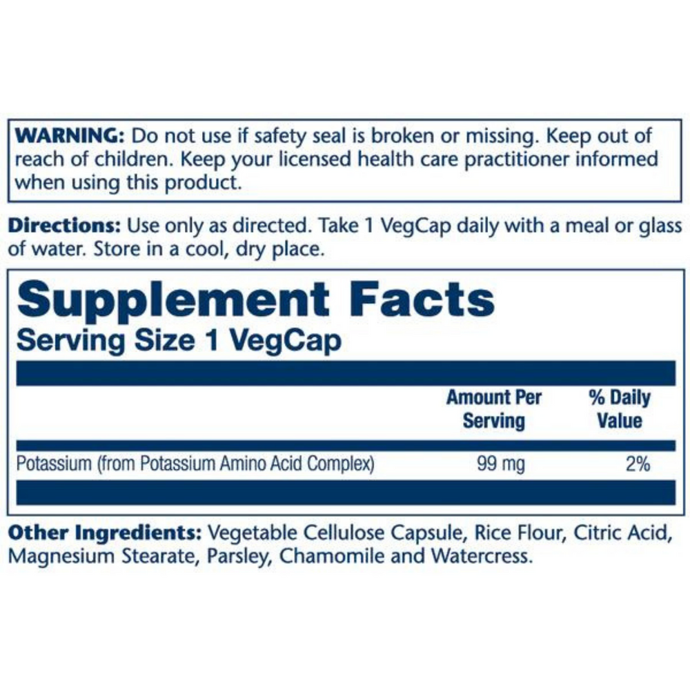 This powerful ingredient is essential for those who suffers from heart and cardiovascular problems. Solaray's Potassium 99mg Amino Acid Complex is formulated to help support a healthy fluid and electrolyte balance in the body, which in turn may help support healthy cardiovascular function and heart rhythm, plus muscle, skeletal and nerve health.
