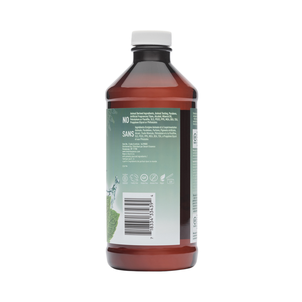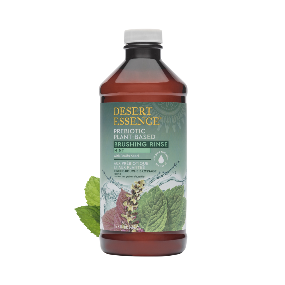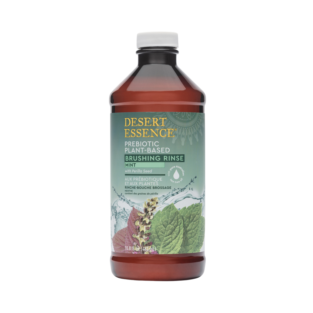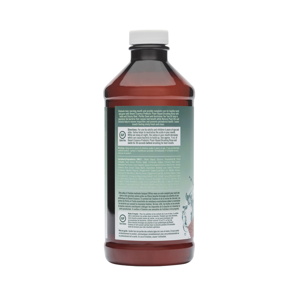 Prebiotic plant-based pre-brushing dental rinse formulated with Inulin, Perilla Seed and pure Australian Tea Tree Oil. Provides botanical care for teeth and gums, neutralizes odor-causing bacteria, and freshens breath with a medley of mints.