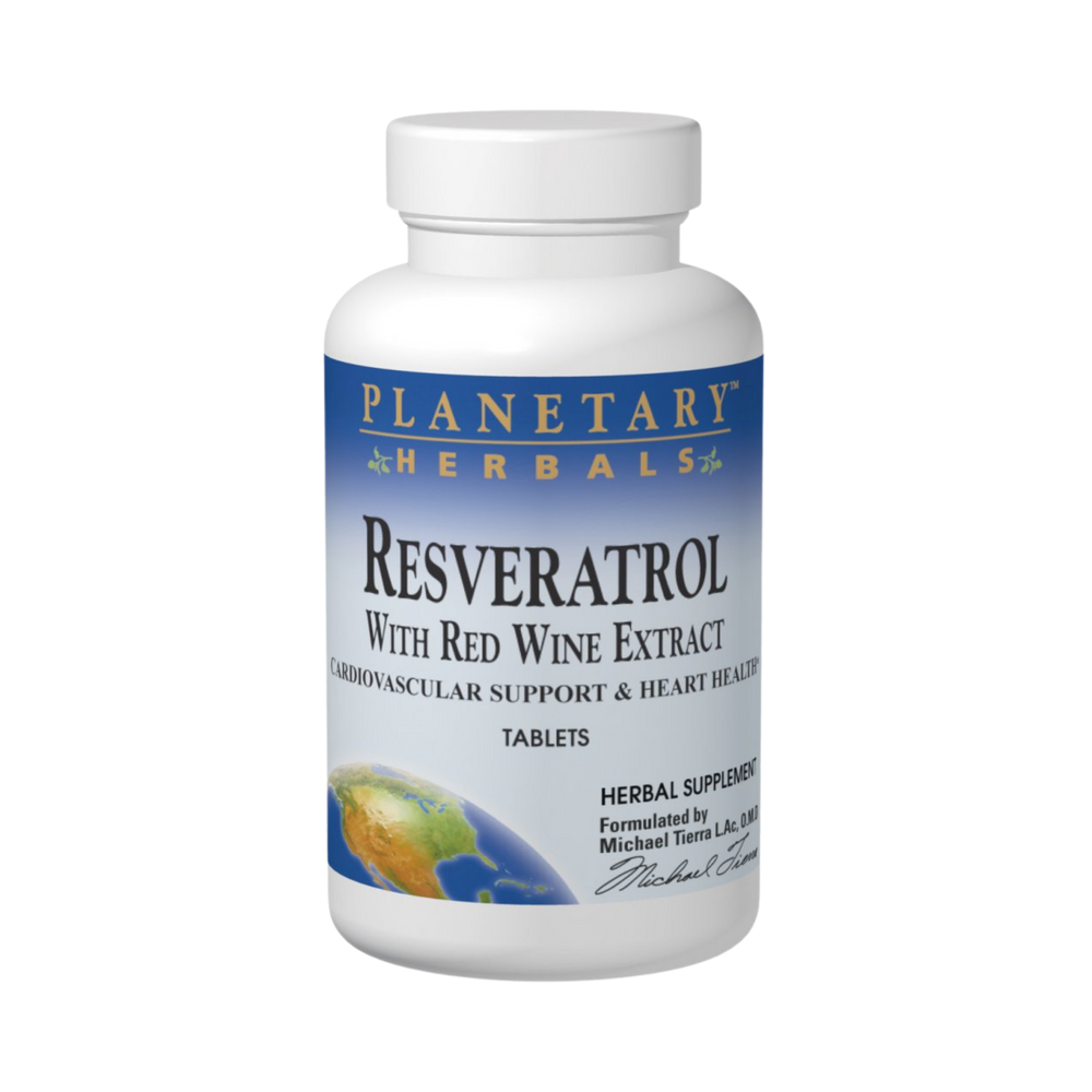 Planetary Herbals Resveratrol is a powerful compound derived from red wine and select botanicals. It possesses powerful antioxidant properties without the alcohol, sulfites, headaches, or excess calories associated with wine. Resveratrol supports cardiovascular and capillary health, improved blood flow, cholesterol wellness, and immune response.