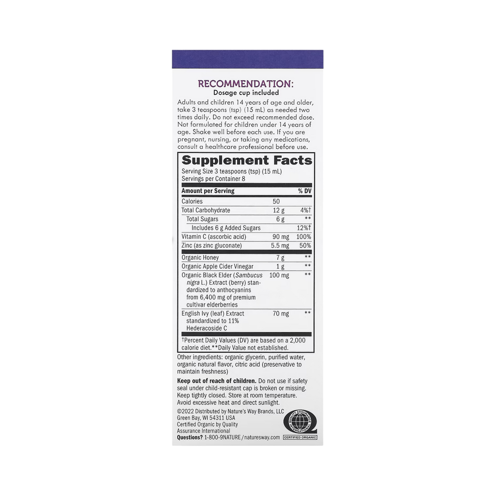 This delicious soothing syrup is made to treat coughs associated with hoarseness, dry throat, and irritants. Also formulated with organic elderberry extract, organic honey, organic apple cider vinegar, vitamin C, and zinc. Nature's Way, Sambucus HoneyBerry Cough Syrup is considered to be a natural remedy that heals cold and cough effectively.