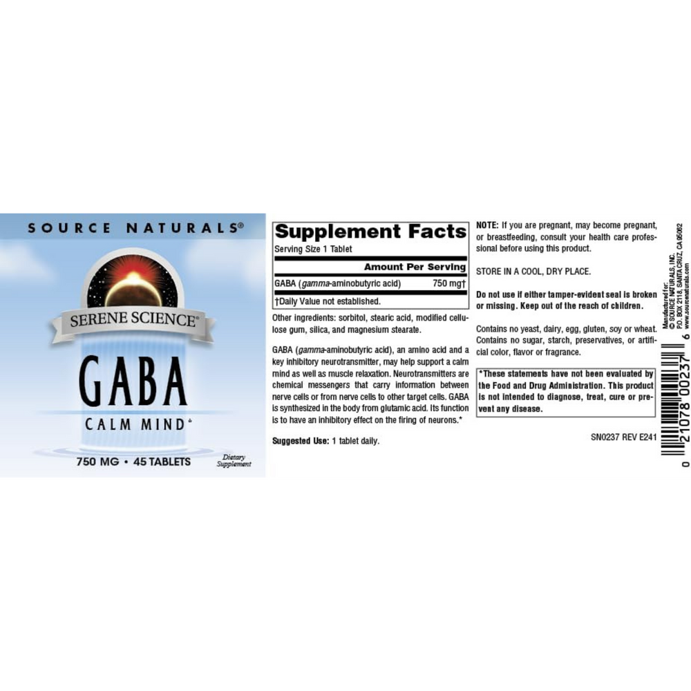 Source Naturals, Serene Science GABA 750 Mg, 45 Tablets