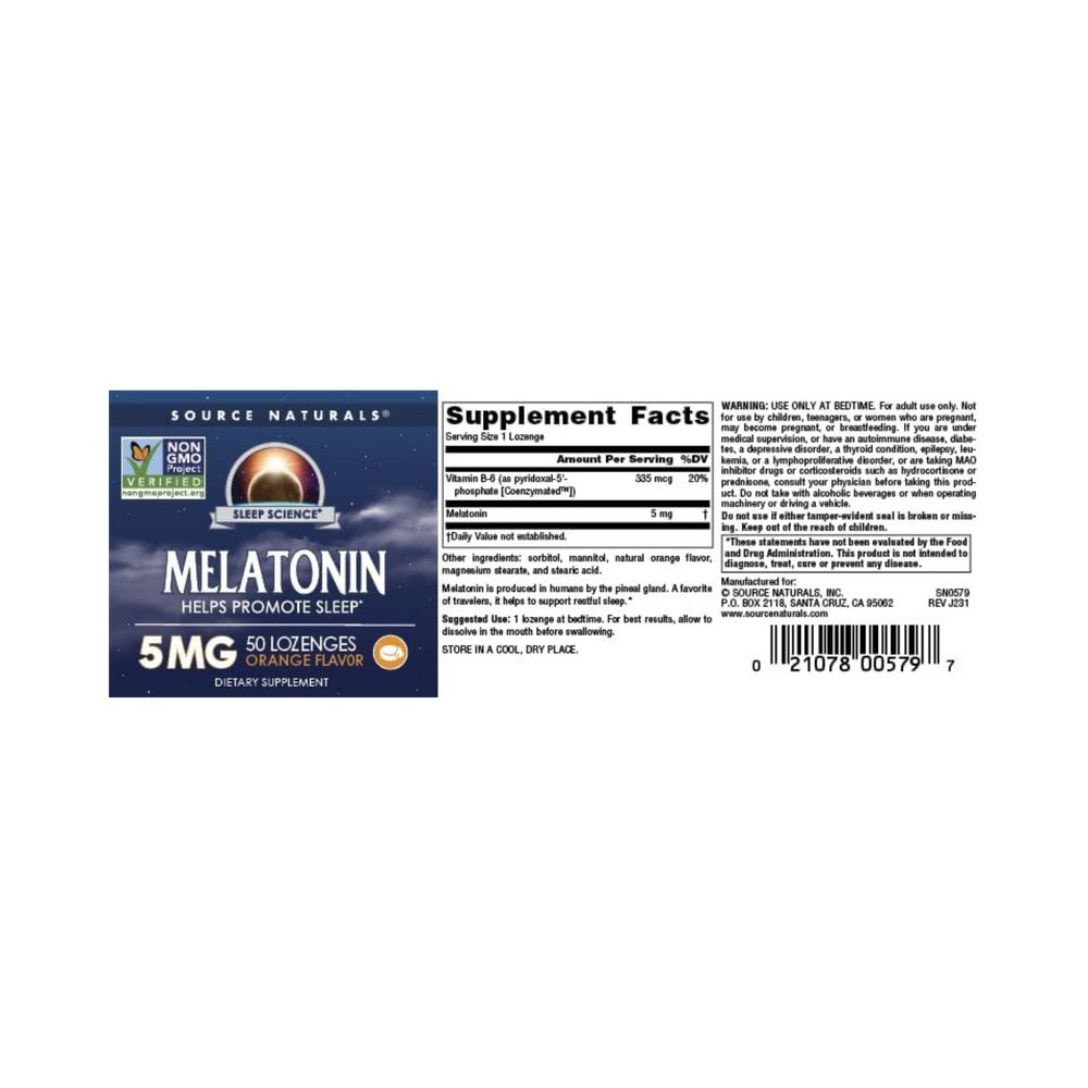 Source Naturals, Sleep Science Melatonin, 5 Mg, 50 Orange Lozenge