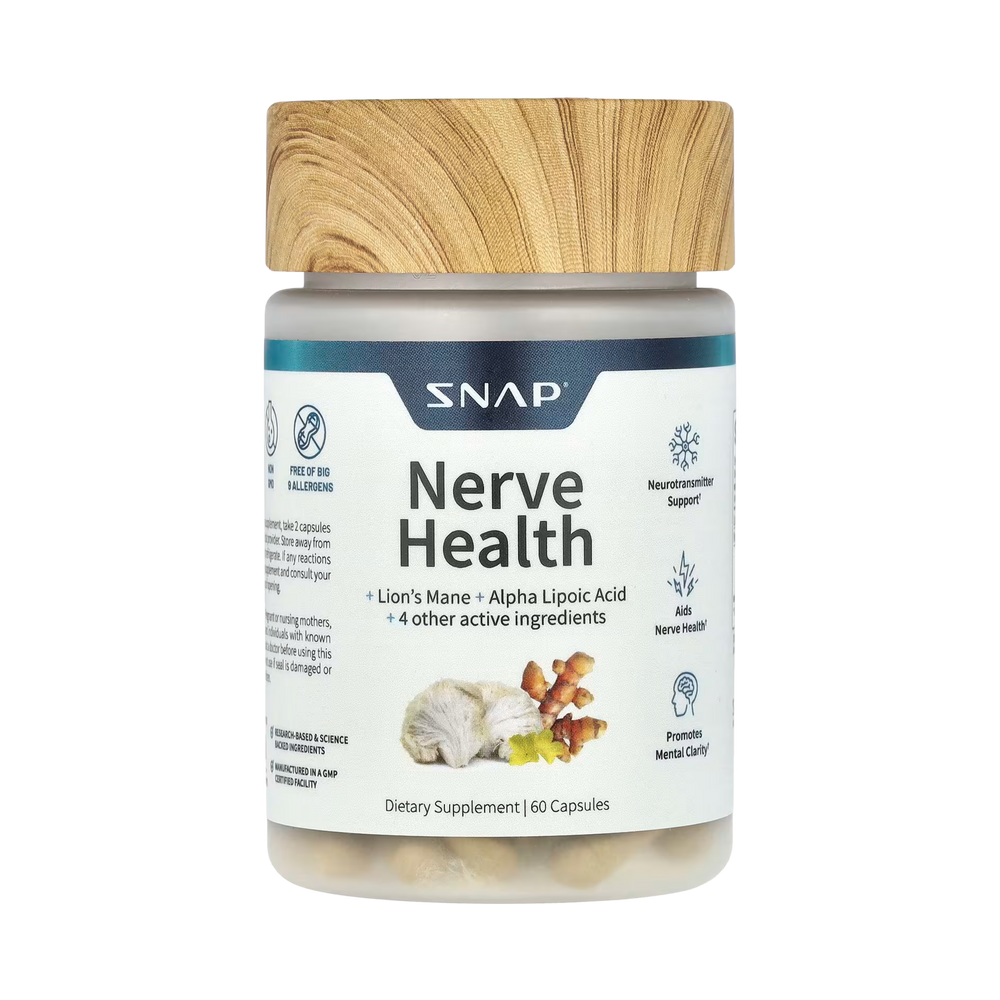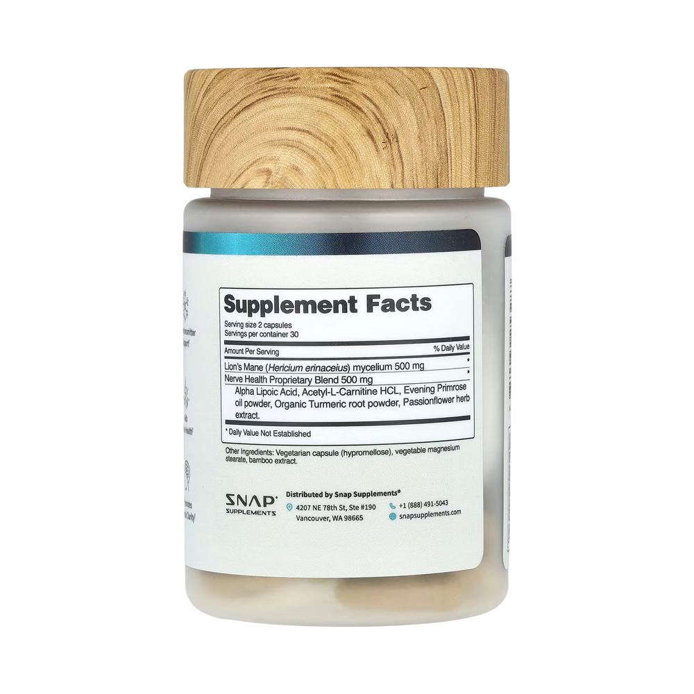 | Nerve Health Proprietary Blend Alpha Lipoic Acid, Acetyl-L-Carnitine HCL, Evening Primrose oil powder, Organic Turmeric root powder, Passionflower herb extract. |