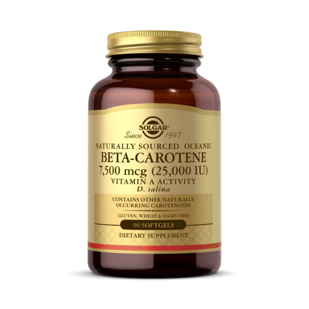 Beta-carotene is referred to as Pro-Vitamin A because it is converted into Vitamin A as the body requires it. This phytonutrient is an antioxidant and an essential nutrient for healthy vision, skin health and immune system support. This formulation utilizes naturally sourced, oceanic beta-carotene derived from the algae D. salina. It is offered in oil-based softgels to promote optimal absorption and assimilation.