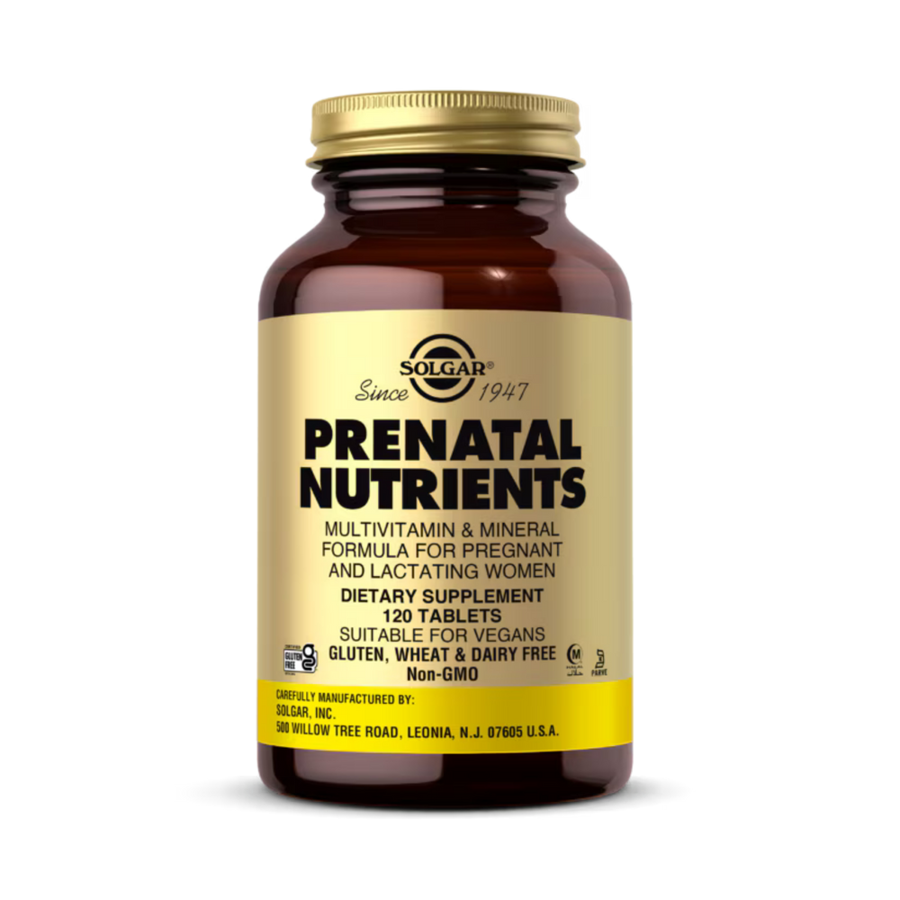 Solgar® Prenatal Nutrients is a proprietary formula that provides 100% Daily Value of most of the essential vitamins and minerals for pregnant and lactating women. Nutritional requirements significantly change during this time, and diet alone may not always be enough to meet those needed levels. This supplement provides a balanced combination of nutrients such as Calcium, Iron, Folic Acid and antioxidants Beta-Carotene, Vitamins C and E. Pregnant women have increased iron requirements. Adequate folate in healthful diets may reduce a woman's risk of having a child with a brain or spinal cord defect.