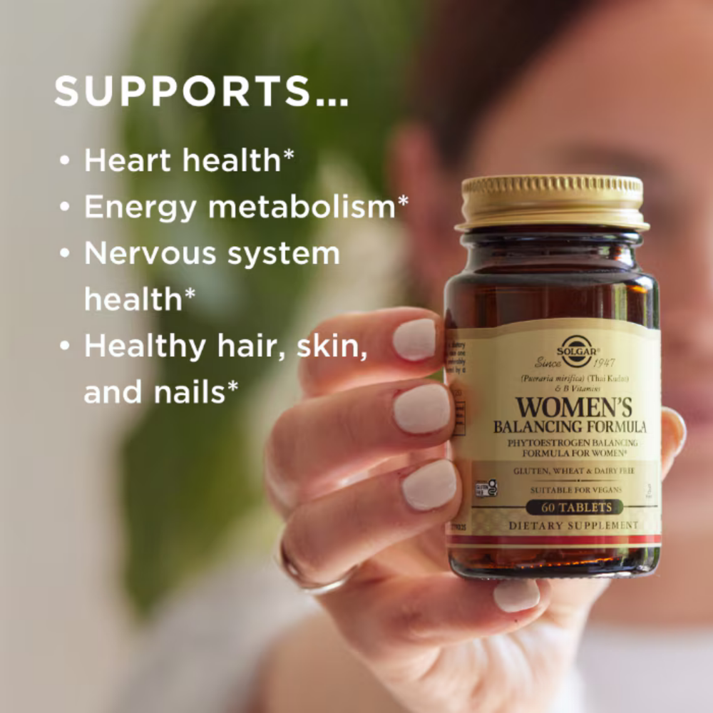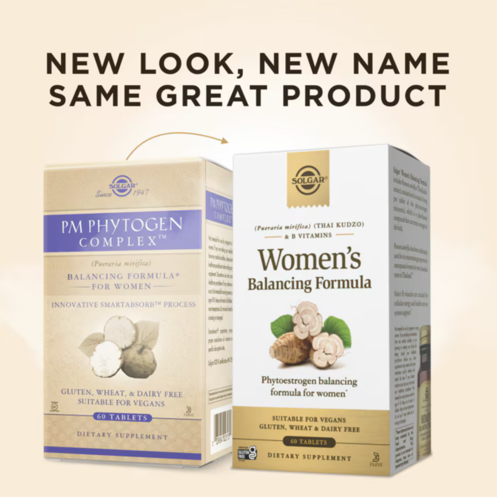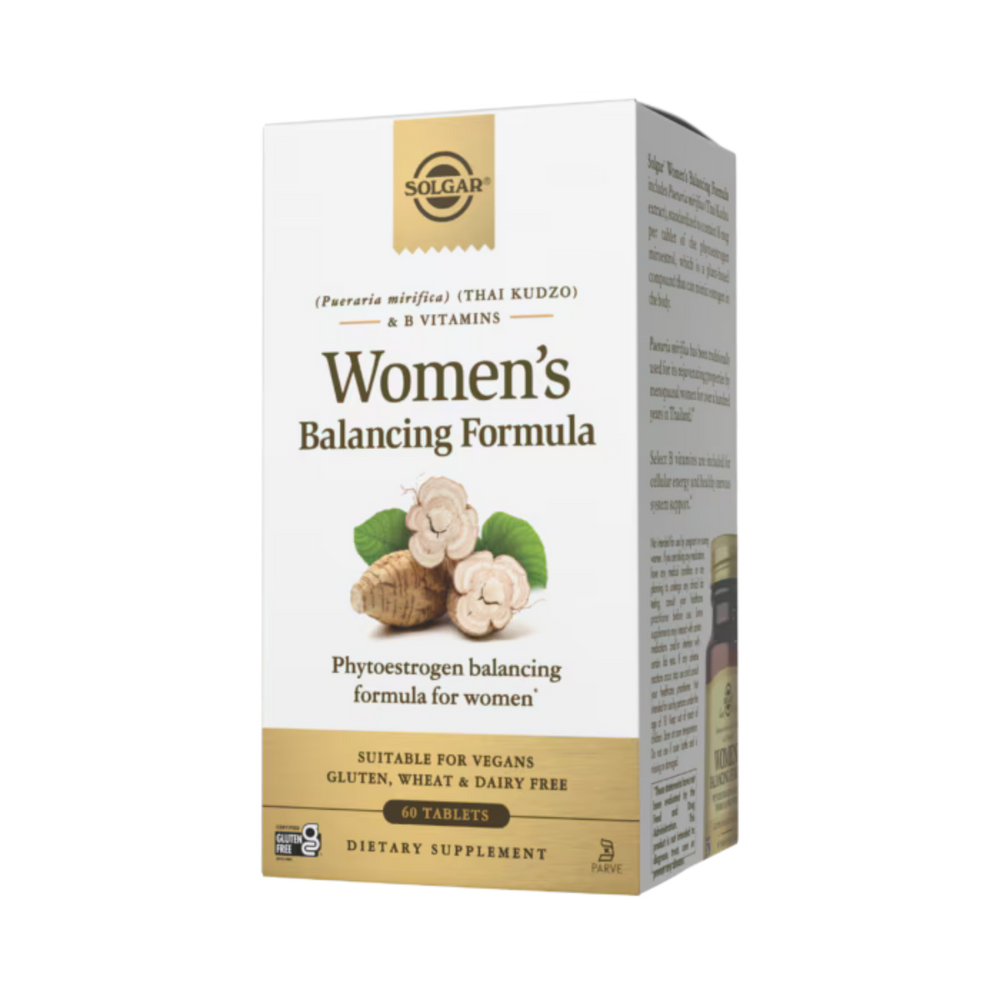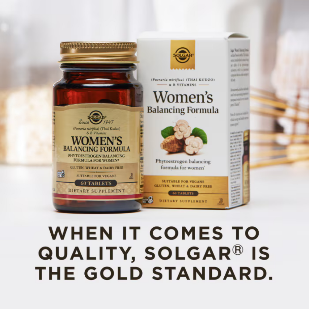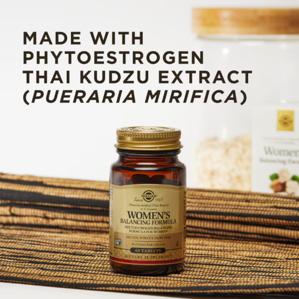 Solgar® Women's Balancing Formula includes Pueraria mirifica (Thai Kudzu extract), standardized to contain 16 mcg per tablet of the phytoestrogen miroestrol, which is a plant-based compound that can mimic estrogen in the body.