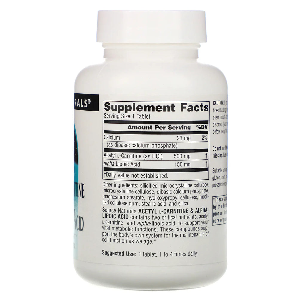 Source Naturals, Acetyl L-Carnitine & Alpha-Lipoic Acid, 650 Mg, 30Tab