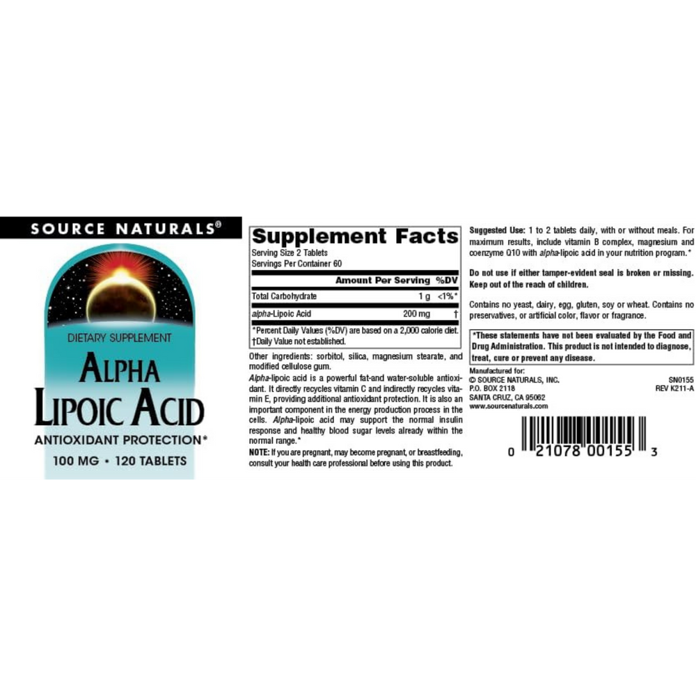 Source Naturals, Alpha Lipoic Acid, 100 Mg, 120 Tablets