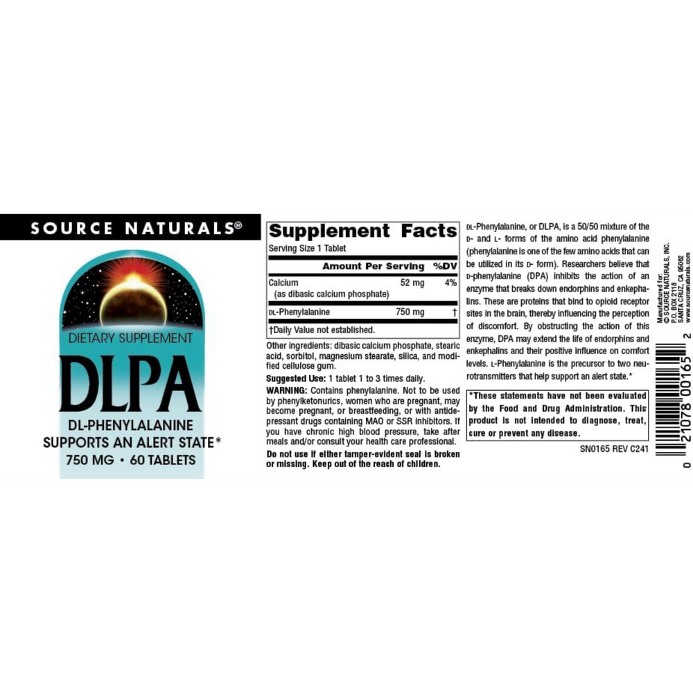 Source Naturals, DLPA, 750 Mg, 60 Tablets