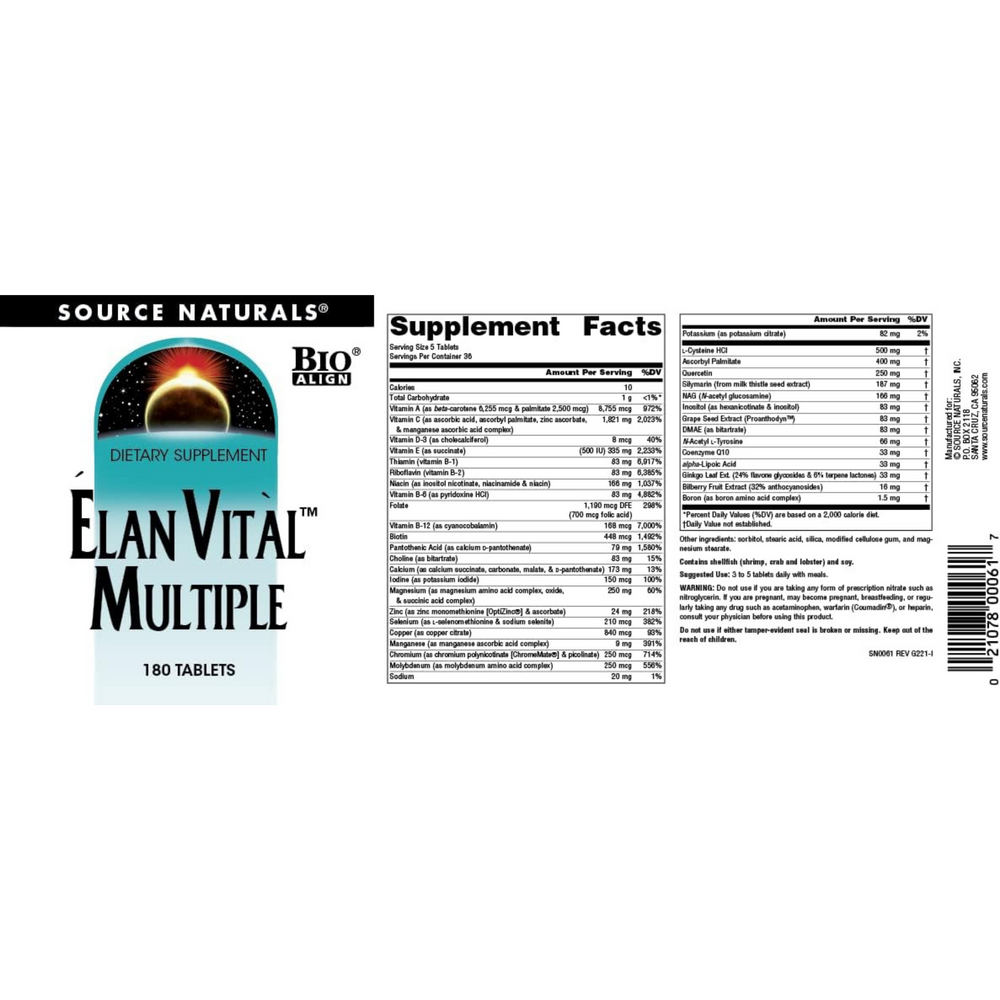 Élan Vitàl is a Bio-Aligned Formula® that is unique in two ways. It contains critical nutrients, not found in typical multiples, to support the primary body systems: the brain, heart, liver, immune and musculoskeletal systems, energy generation, and antioxidant defense. Furthermore, it provides most nutrients in the higher potencies often recommended by holistic health professionals. It is a potent source of antioxidants, including quercetin, silymarin, grape seed extract, ginkgo, and bilberry extract.