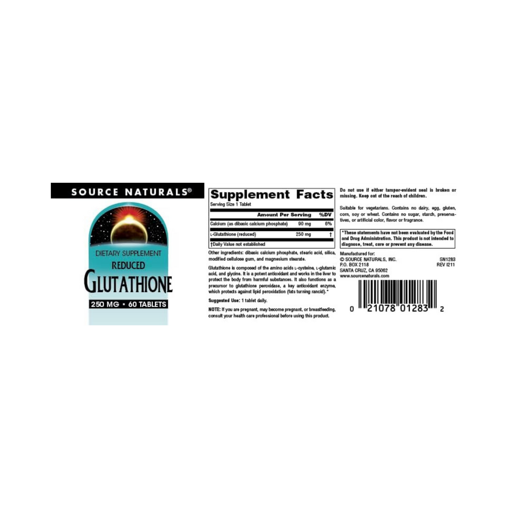 Source Naturals, Glutathione, Reduced, 250 Mg, 60 Tablets