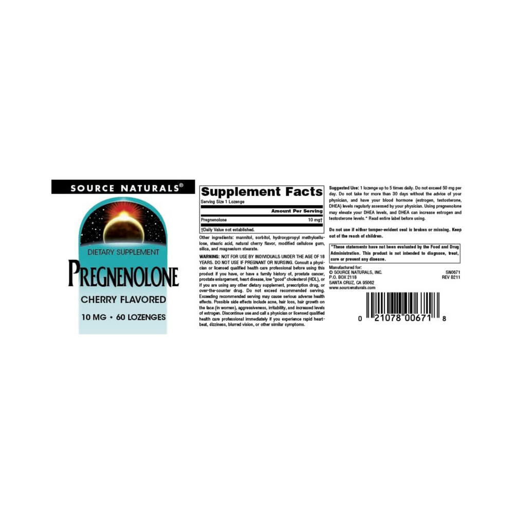 Pregnenolone,Inactive Ingredients: mannitol, sorbitol, hydroxypropyl methylcellulose, natural cherry flavor, modified cellulose gum, colloidal silicon dioxide, stearic acid, and magnesium stearate.