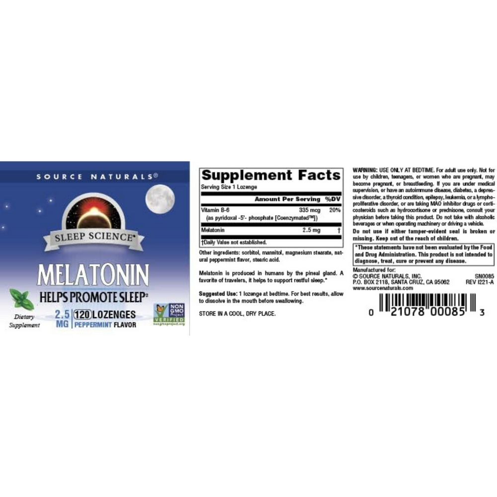 Per 1 Lozenge: Melatonin - 2.5mg Other Ingredients: sorbitol, mannitol, natural peppermint flavor, stearic acid, and magnesium stearate.