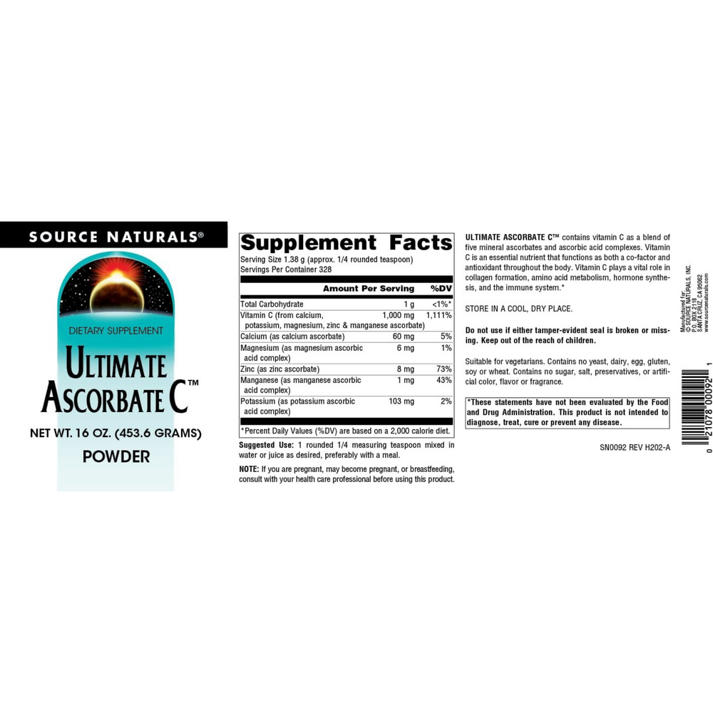Source Naturals, Ultimate Ascorbate C, 16 Oz Powder