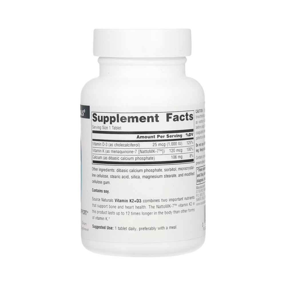 Source Naturals, Vitamin K2 + D3, 100 Mcg, 60 Tablets