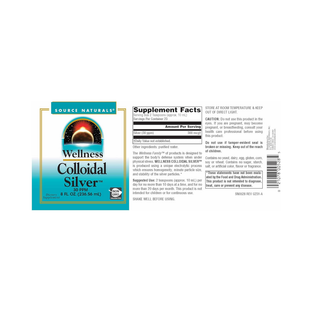 Source Naturals, Wellness Colloidal Silver, 30 Ppm, 8 Oz Liquid