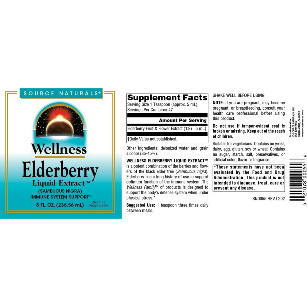 Source Naturals, Wellness Elderberry Liquid Extract, 8 Oz