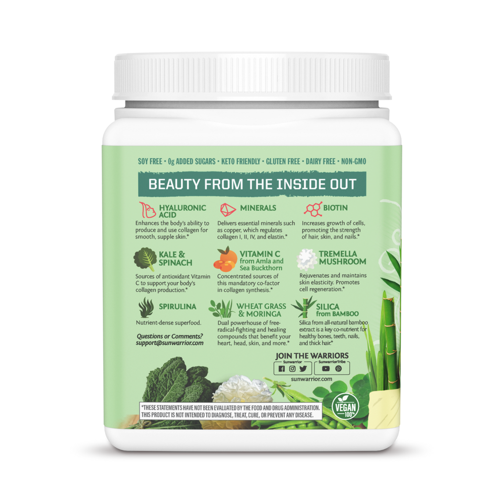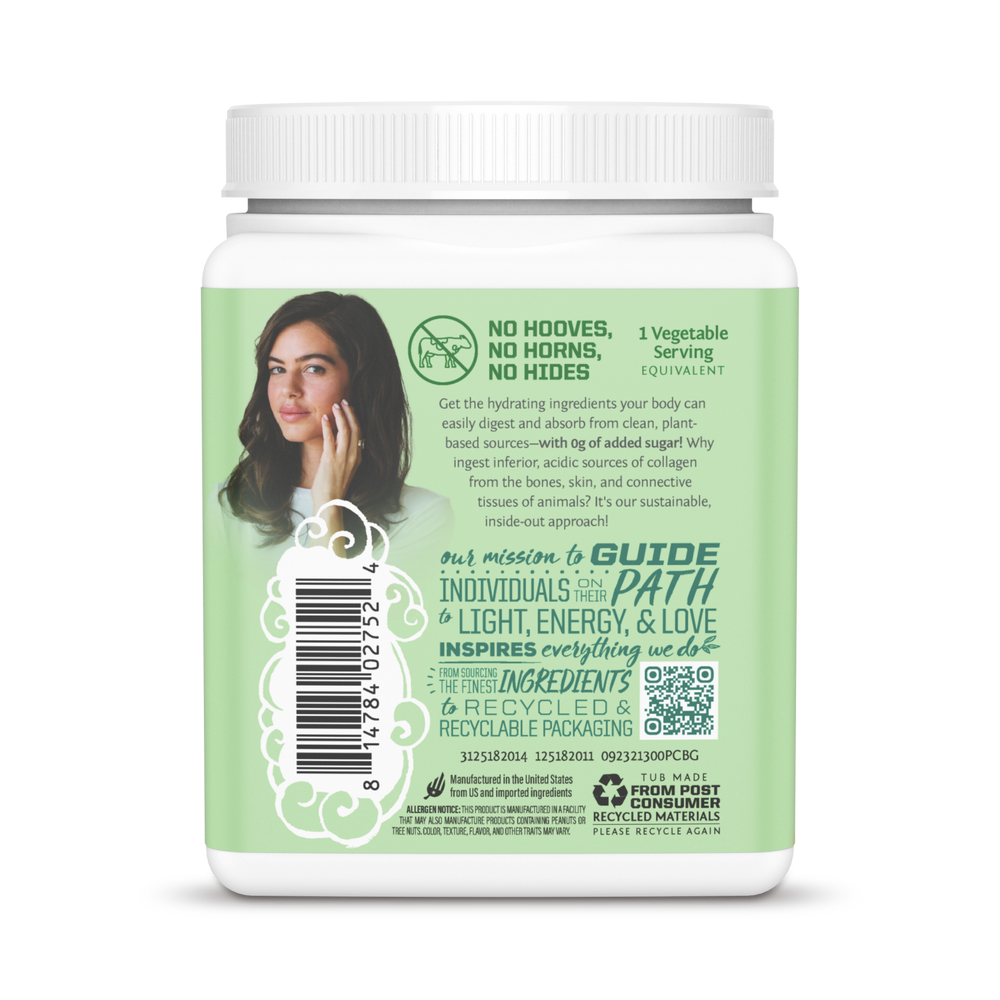 Get the hydrating ingredients your body can easily digest and absorb from clean, plant- based sources- with 0 g of added sugar! Why ingest inferior, acidic sources of collagen from the bones, skin, and connective tissues of animals? It's our sustainable, inside-out approach!