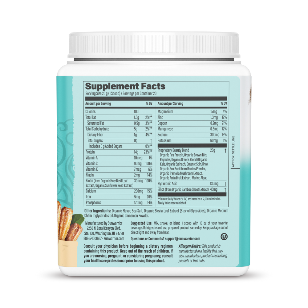 | Proprietary Beauty Blend Organic Pea Protein, Organic Brown Rice Peptides, Organic Greens Blend (Organic Kale, Organic Spinach, Organic Spirulina),Organic Sea Buckthorn Berries Powder, Organic Tremella Mushroom Extract, Organic Amla Fruit Extract, Marine Algae |